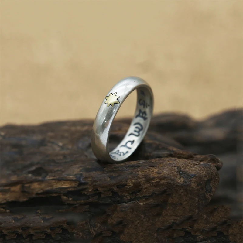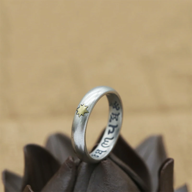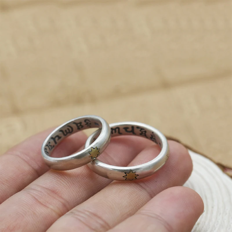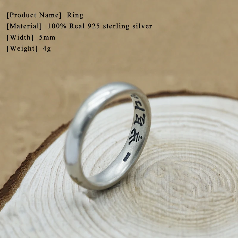 Lucky Couple Ring 100% Real 925 Sterling Silver Jewelry men women Ethnic Buddha Mantra Heart Sutra Fashion Ring 2020 R94