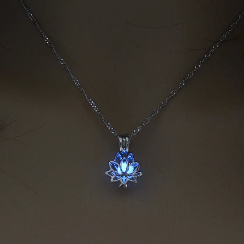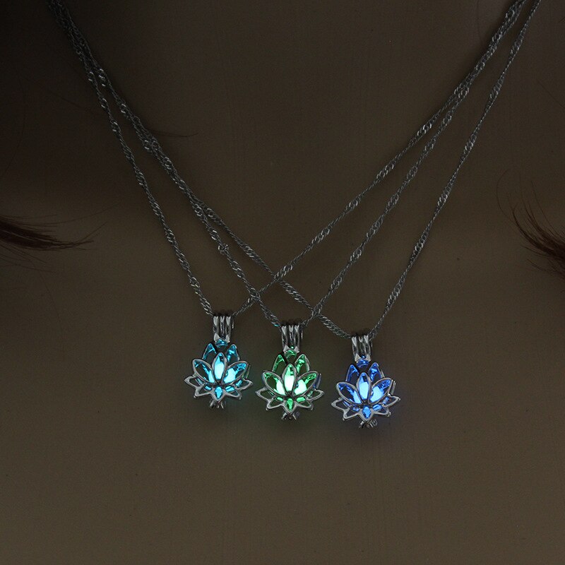 Luminous Glowing In The Dark Moon Lotus Flower Shaped Pendant Necklace For Women Yoga Prayer Buddhism Jewelry