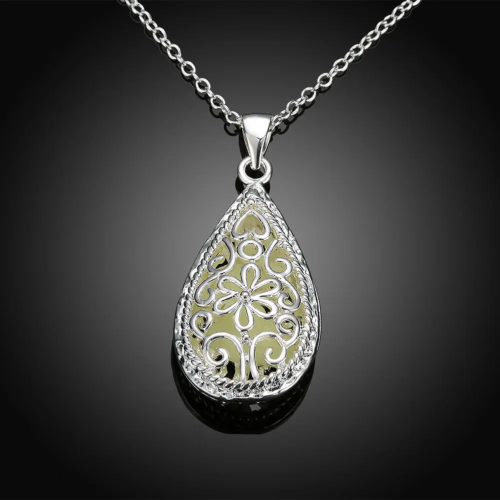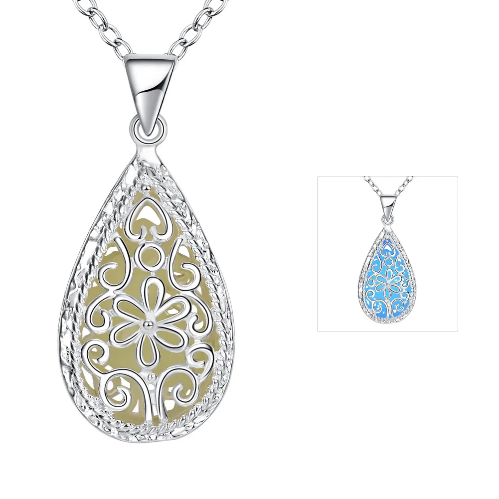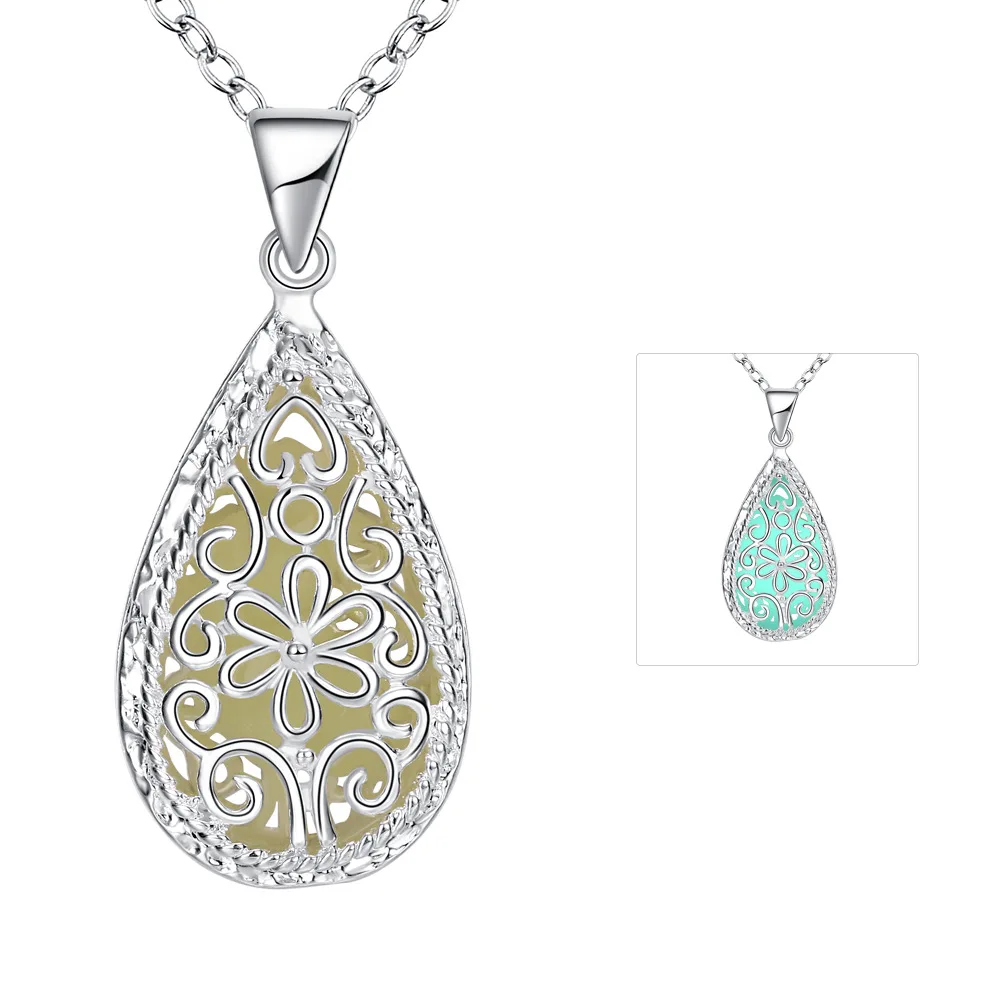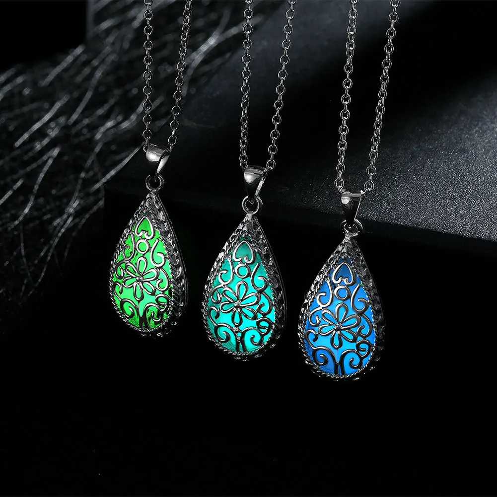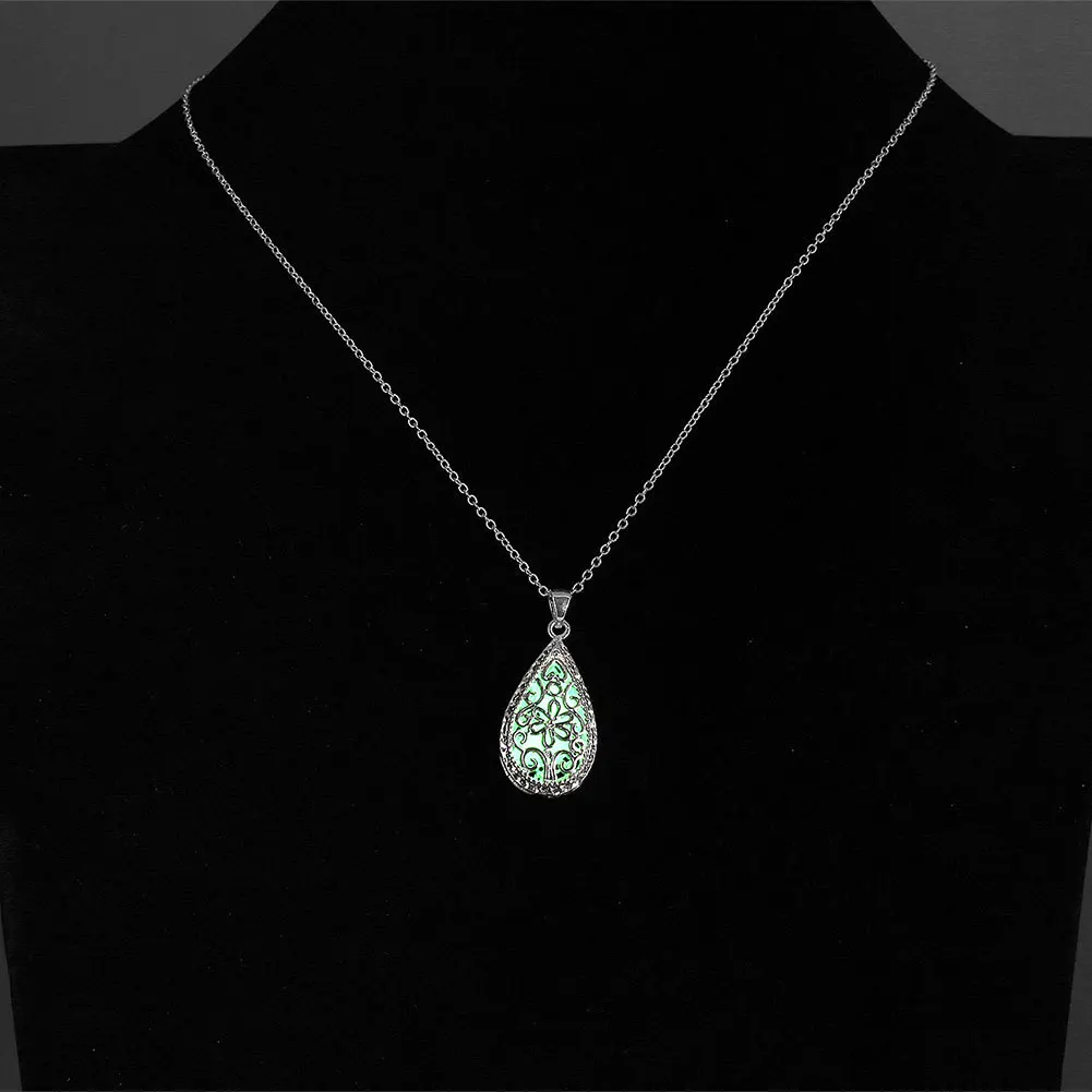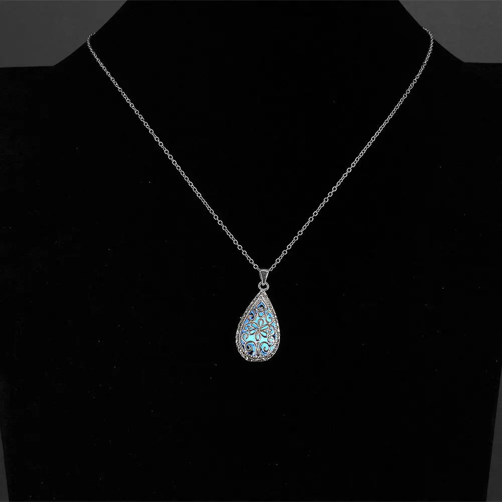 Luminous Glowing Stone Locket Necklace Jewelry Hollow Water Drop Necklace