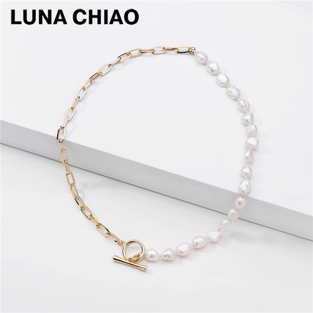 LUNA CHIAO T bar O bar Fresh Water Pearl Strand Necklace Lariat Gold Color Chain Link Chunky Choker Necklaces for Women