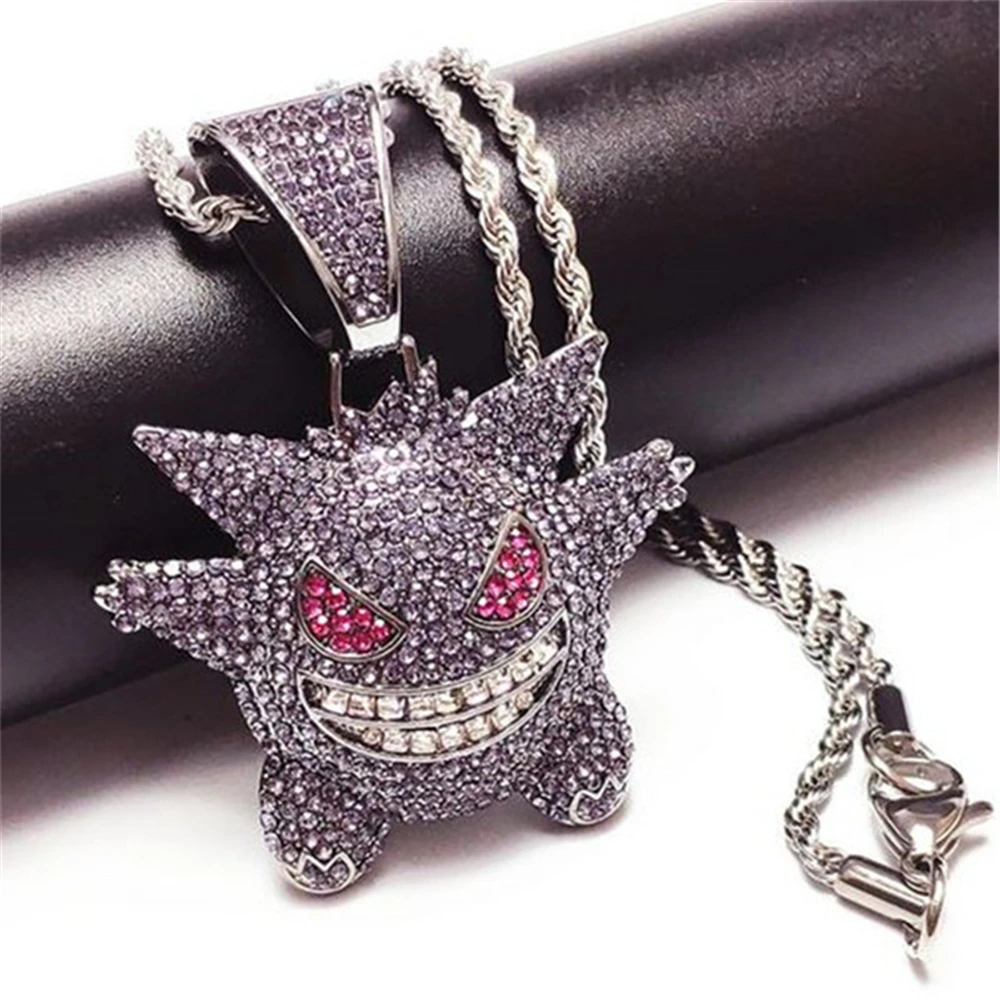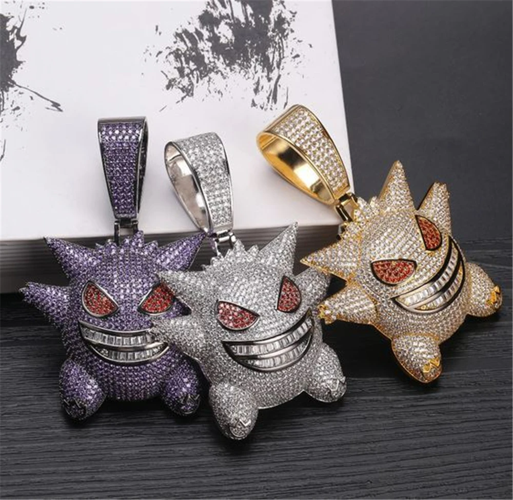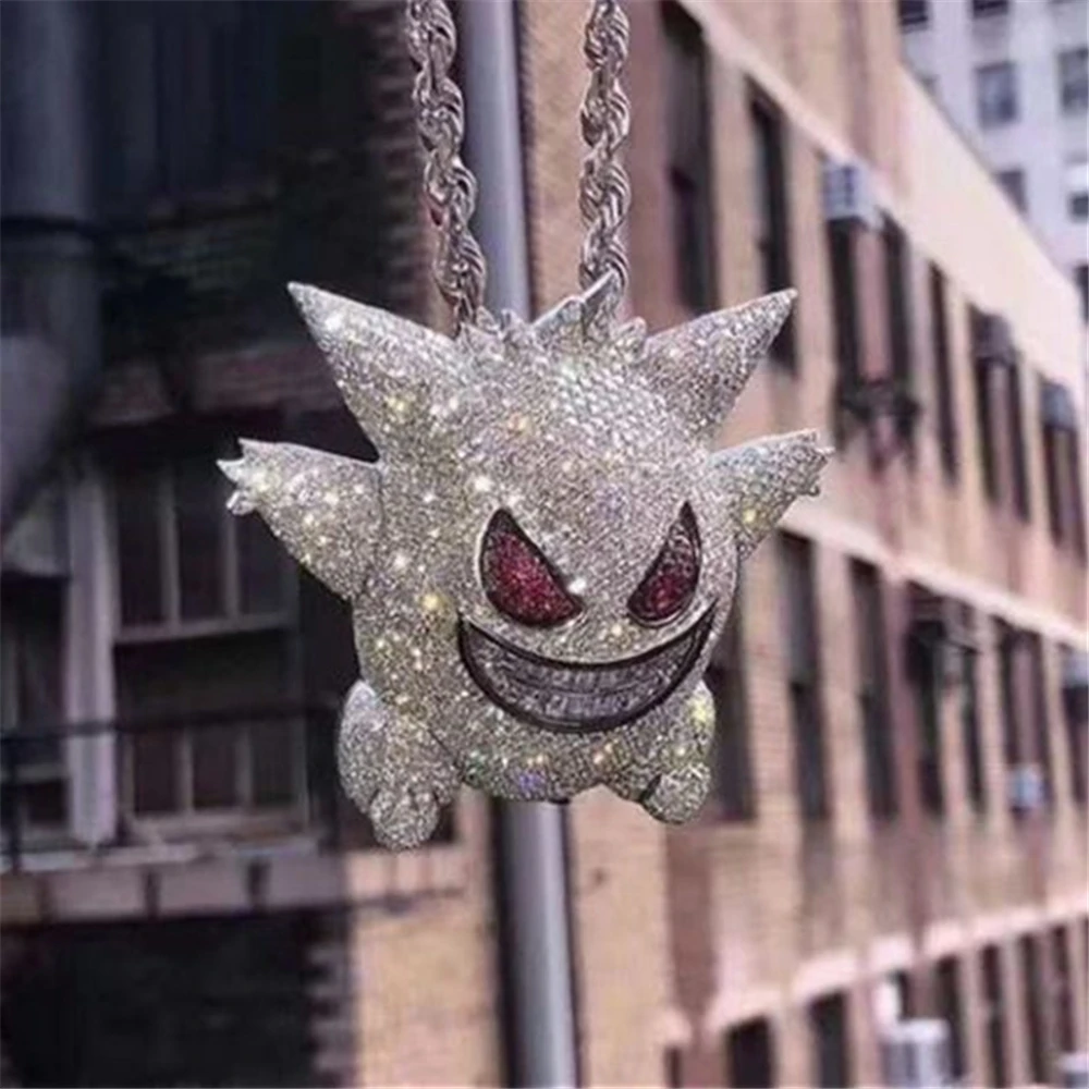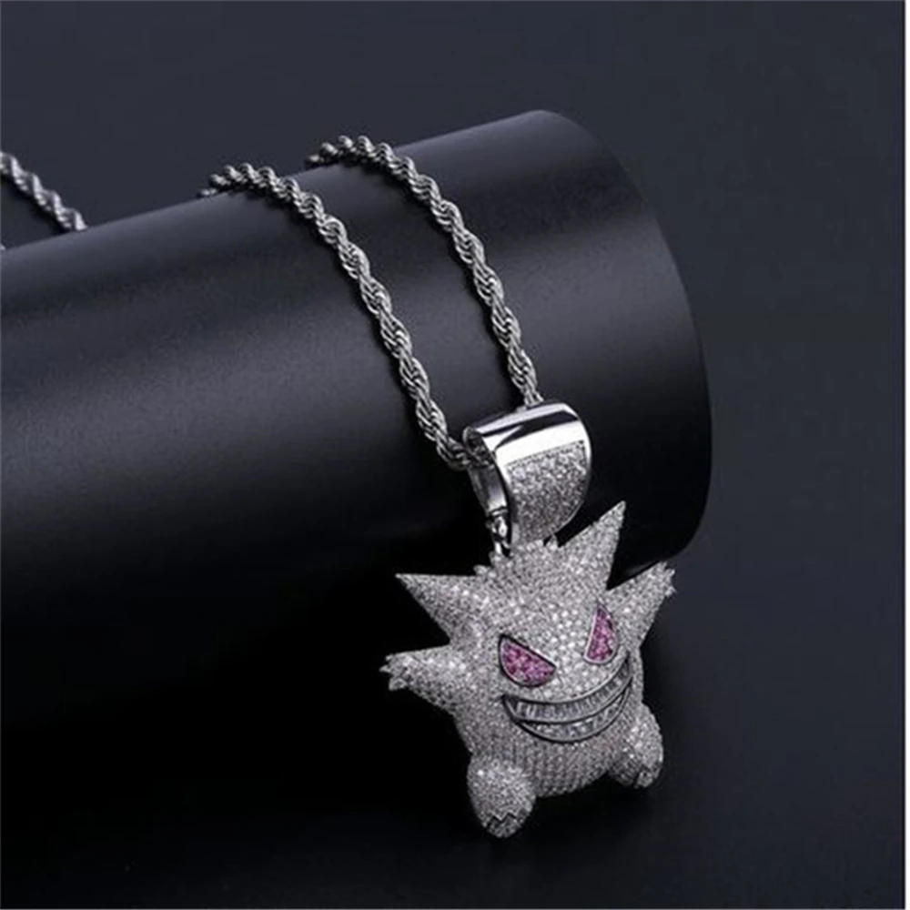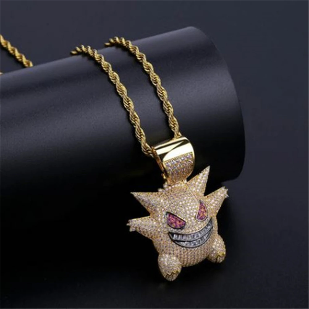 Luokey Men Hip Hop Chain Punk Necklace 3A Zircon Crystal Cartton Anime Pendant Necklace For Women Rapper Statement Jewelry Gifts