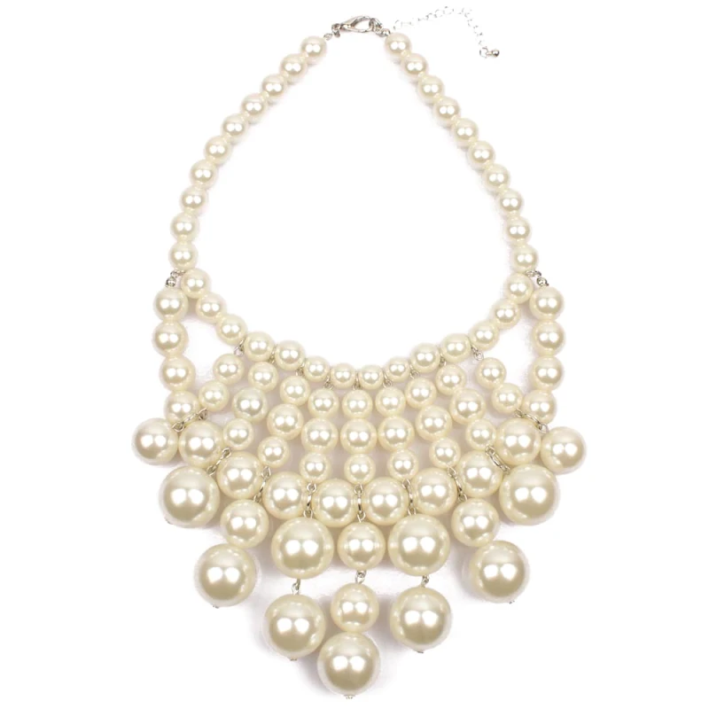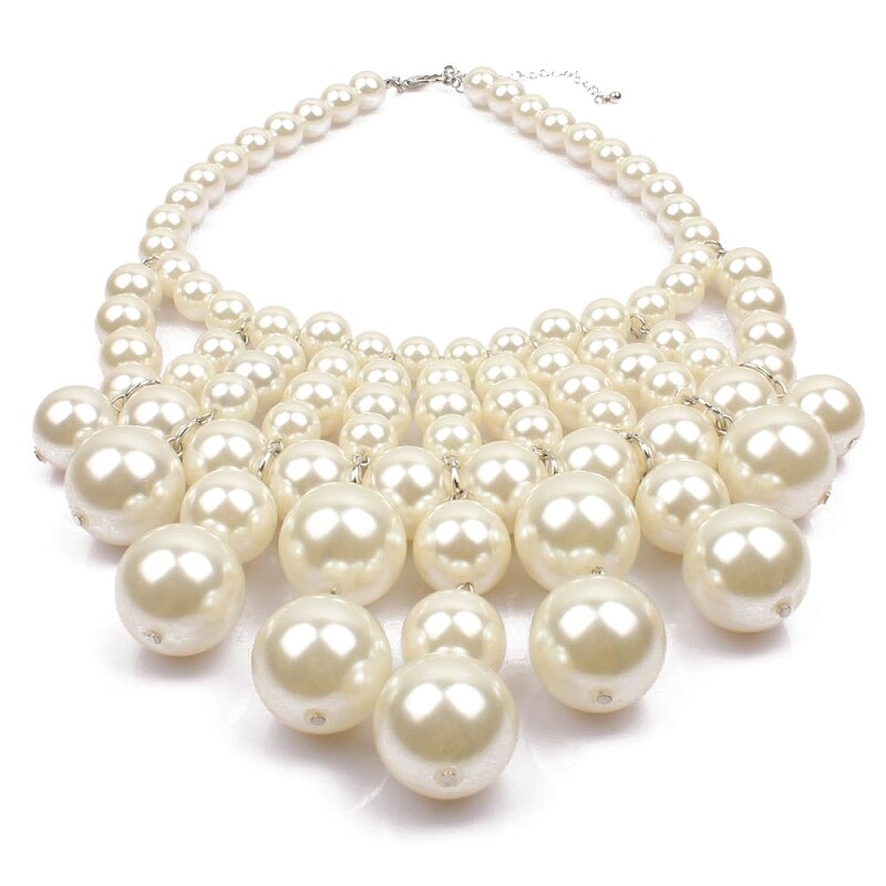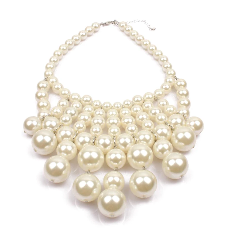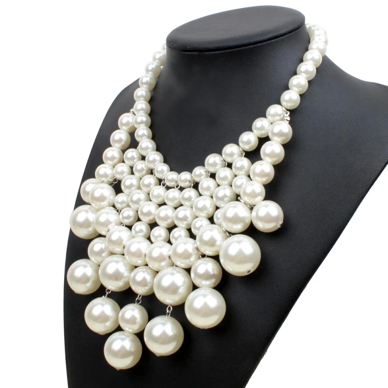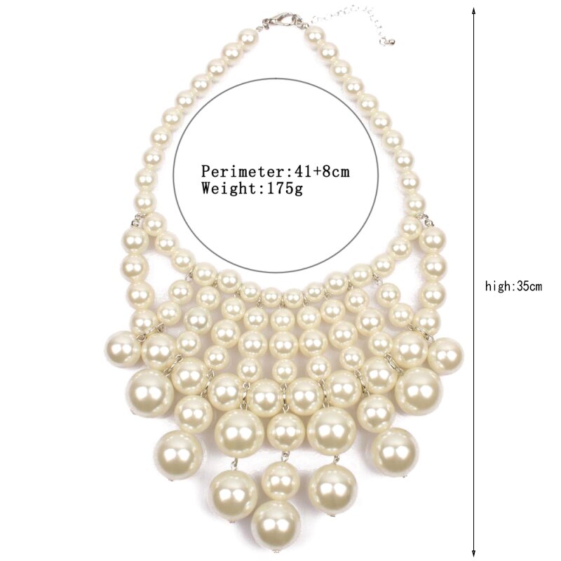 Luxery Jewelry Accessories Elegant Simple Hyperbole White Imitation Pearls Pendant Choker Bib Statement Pearl Necklace for Women