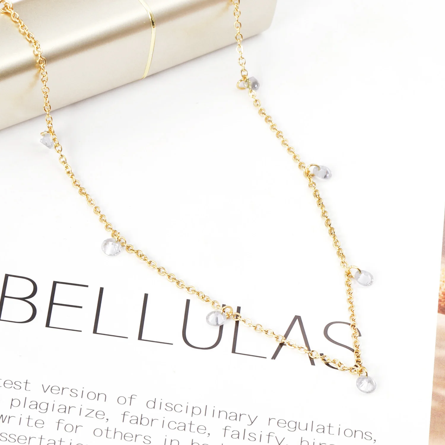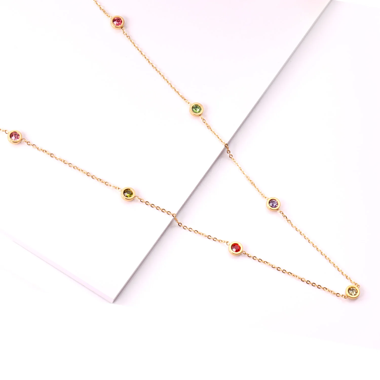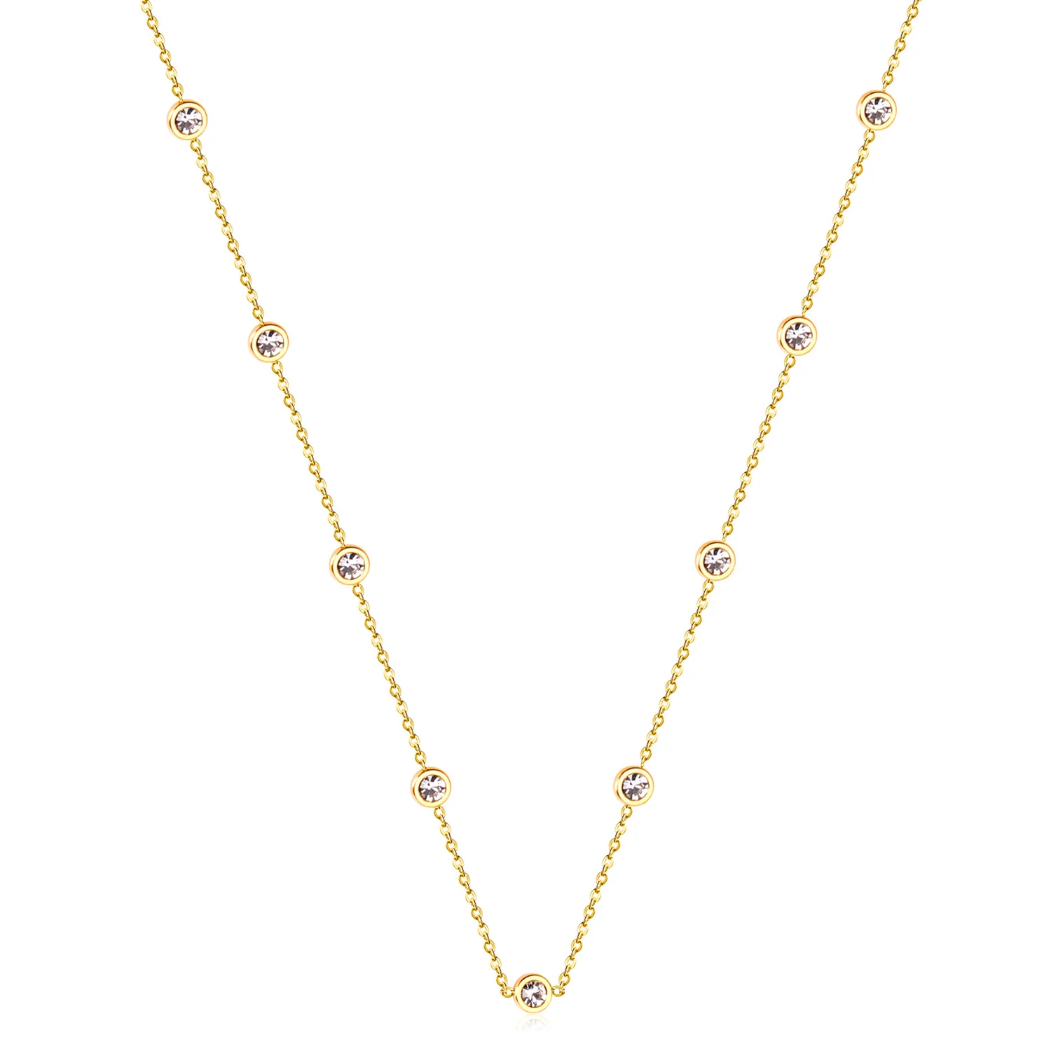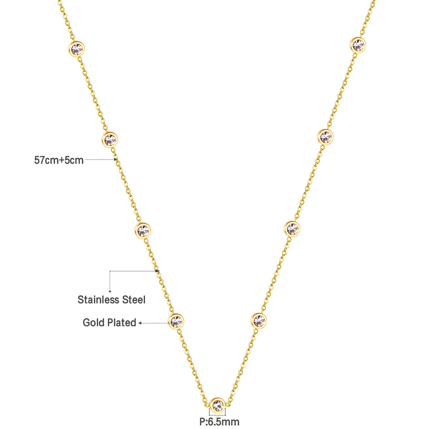 LUXUKISSKIDS Round Zircon Pendants Necklaces Gold Color Stainless Steel Long 57cm+5cm Link Chains Necklaces Costume Accessories
