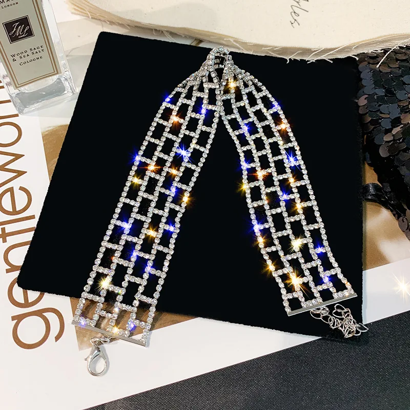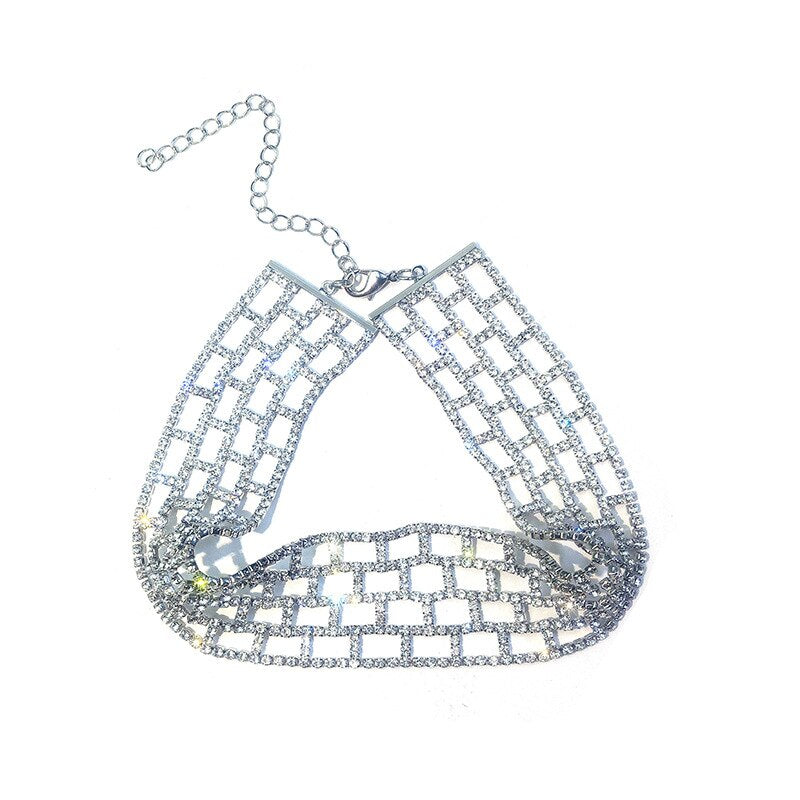 Luxurious Geometry chokers necklaces for women Rhinestone full Wide form lattice crystal Jewellery Collar chain gift