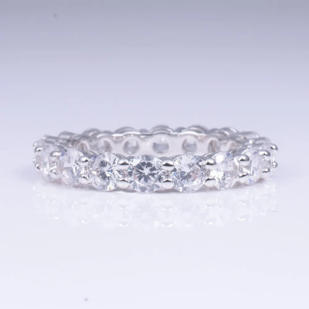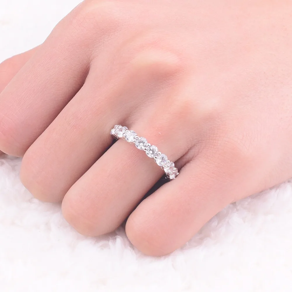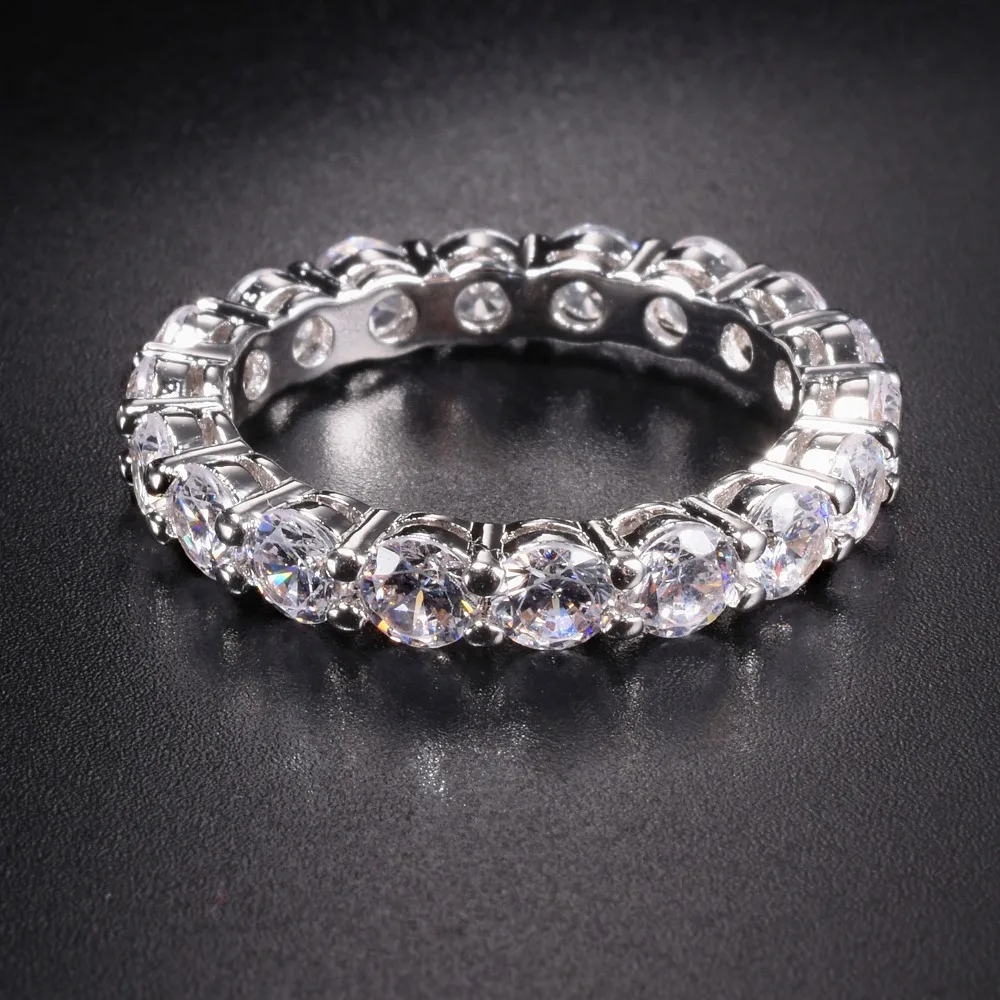 Luxury 925 SILVER PAVE SETTING FULL CZ ETERNITY BAND ENGAGEMENT WEDDING Rings DIAMOND simulated PLATINUM Size 5,6,7,8,9,10