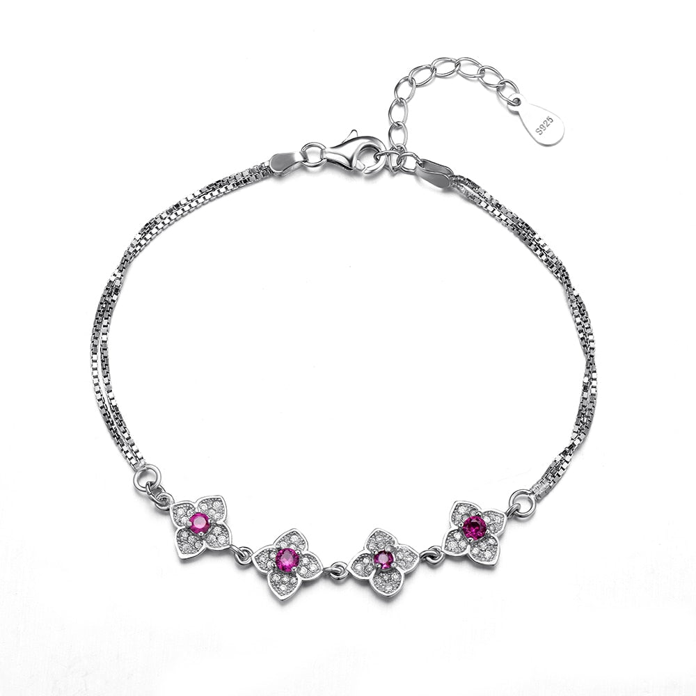 Luxury 925 Sterling Silver Bracelet Women Red Jade Flower Party Wedding Box Chain Link Bracelets Female Jewelry Gift W4 BA006