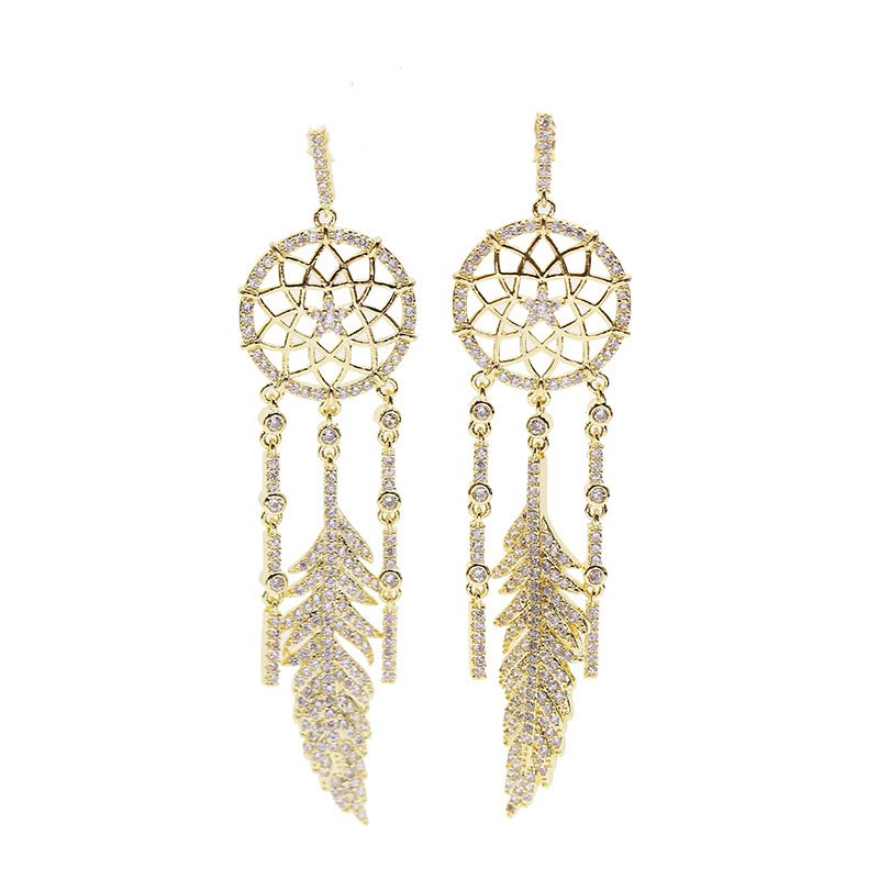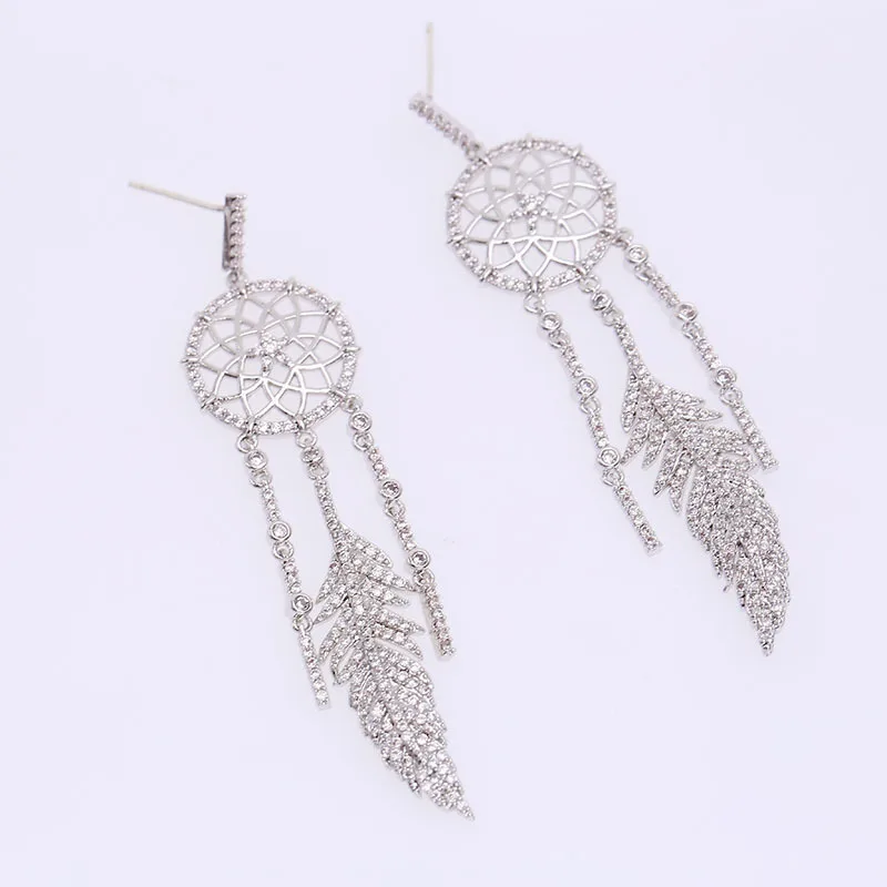 Luxury Fashion Retro Design Personality Tassel Feather Crystal Earrings European Charm Women Holid Casual Jewelry Accessories