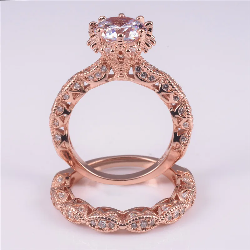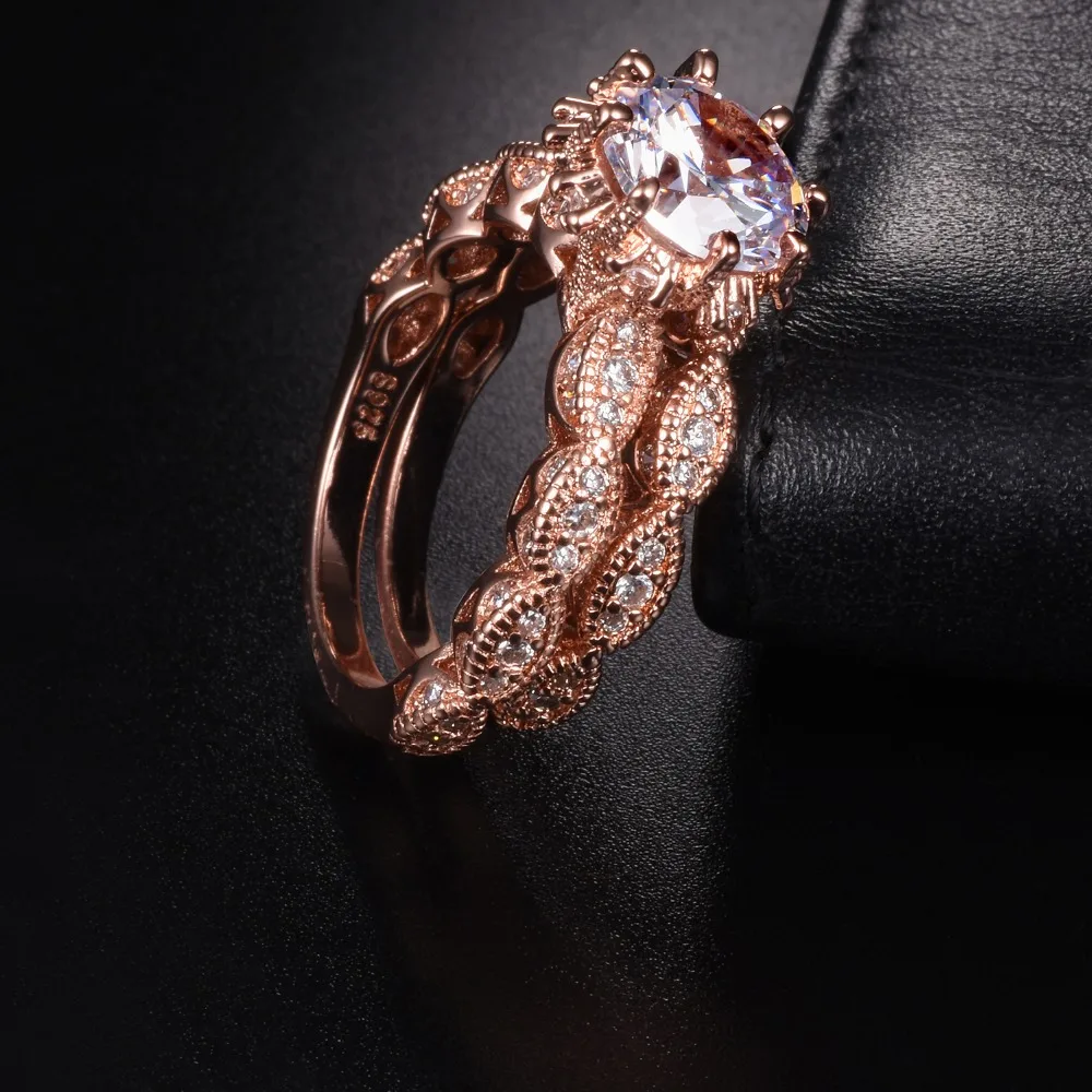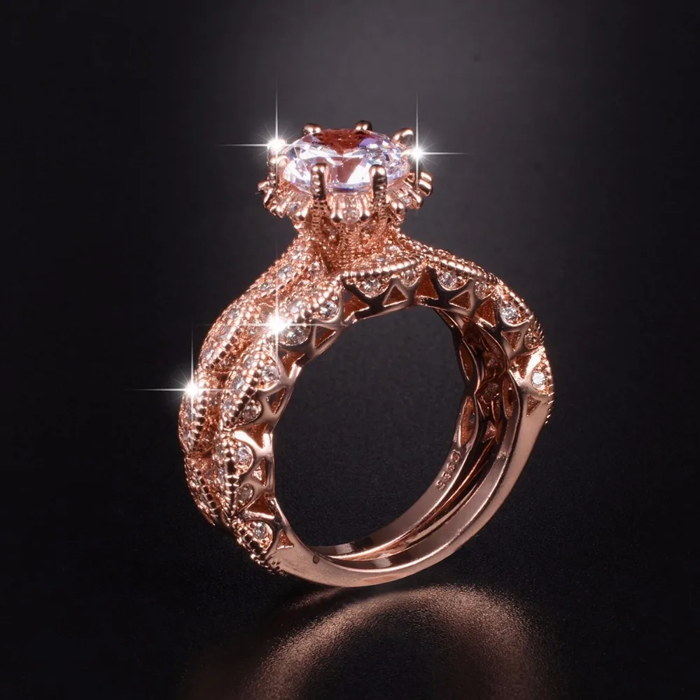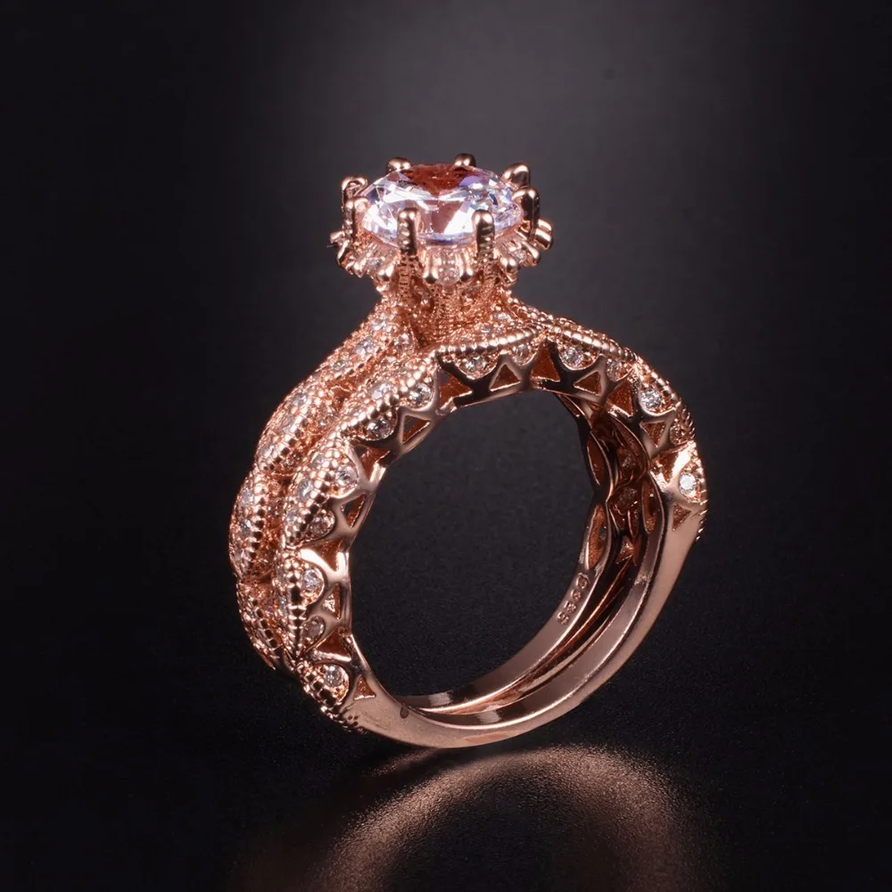 luxury Flower 3ct Simulated Diamond Ring 2-in-1 Solid 925 silver 18K Rose gold Jewelry Engagement Wedding Rings Sets for Women