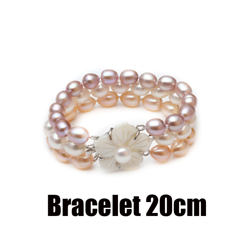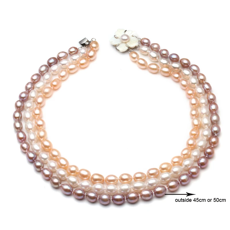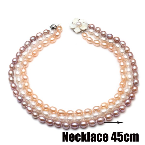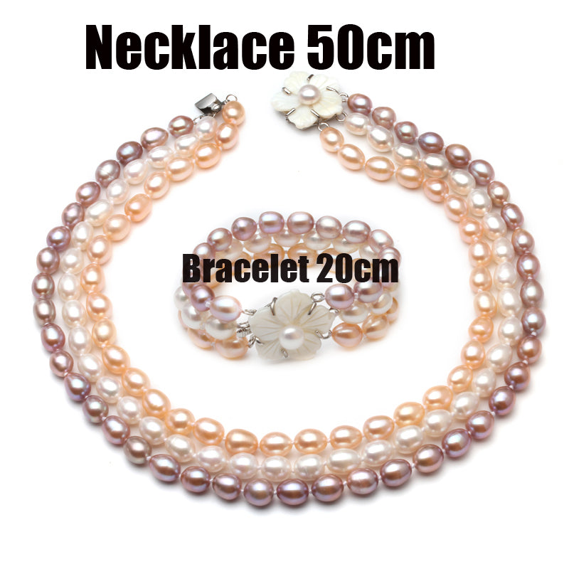 Luxury style AAA Three Rows Pearl Necklace Real Rice Pearl necklace Bracelet Set Wedding Jewelry Fine Jewelry