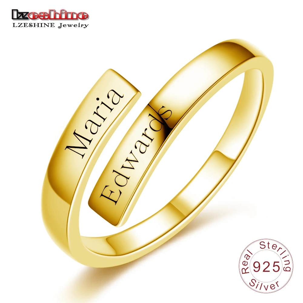 Engraved Name Couple Ring 925 Sterling Silver Gold Color Simple Open Finger Ring For Lovers Anniversary Jewelry Gift