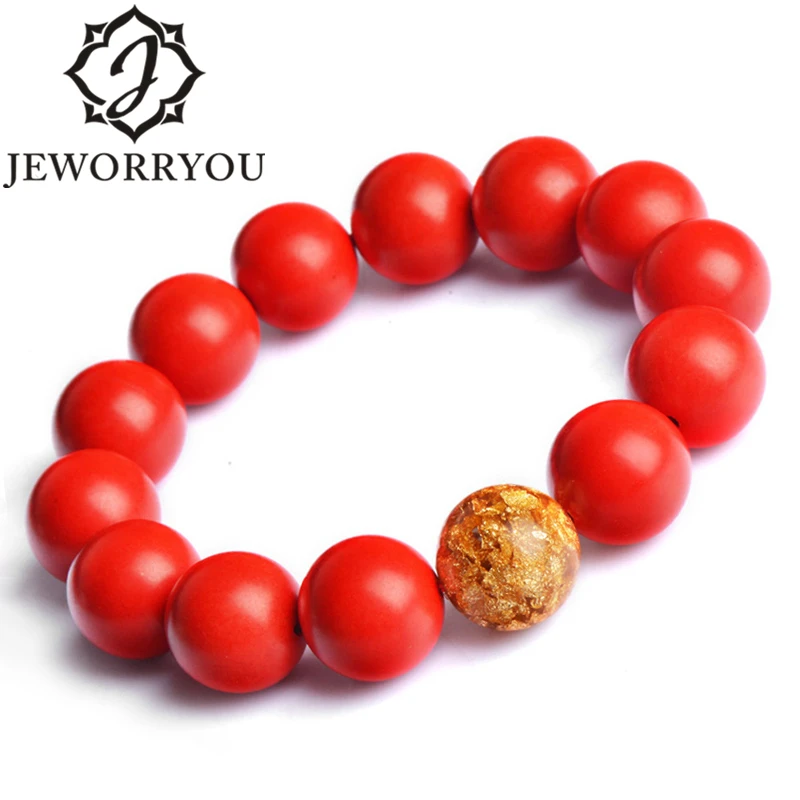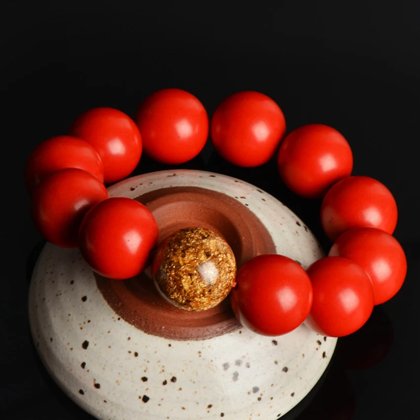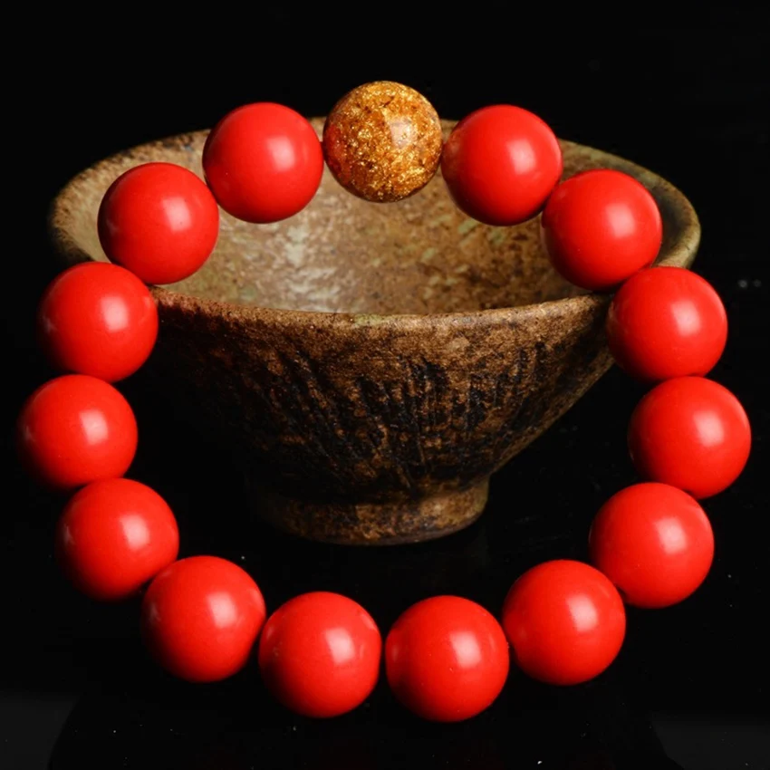 Man Bracelets Hand Chain Cinnabar Buddha Bracelet Women 8-16mm Goldleaf Accessories Red Bracelet Male