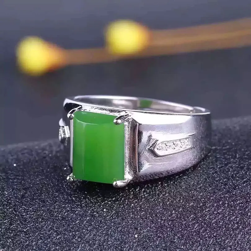 Man ring Natural Jasper rings jade gemstone genuine solid 925 sterling silver real men Jewelry