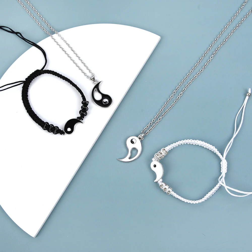 Matching 2 Pieces Stainless Steel Tai Chi Pendant Puzzle Necklace DIY Bracelet Jewlery Gift Couple Friends Bracelets Necklaces