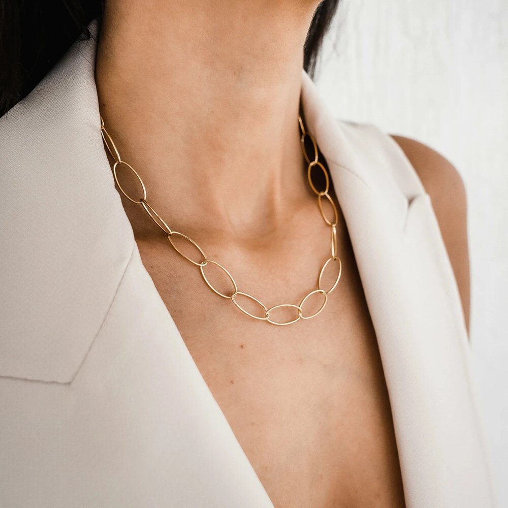 Mavis Hare Celia Oval Link Necklace Stainless Steel 45cm Choker Necklace as Lady Gift