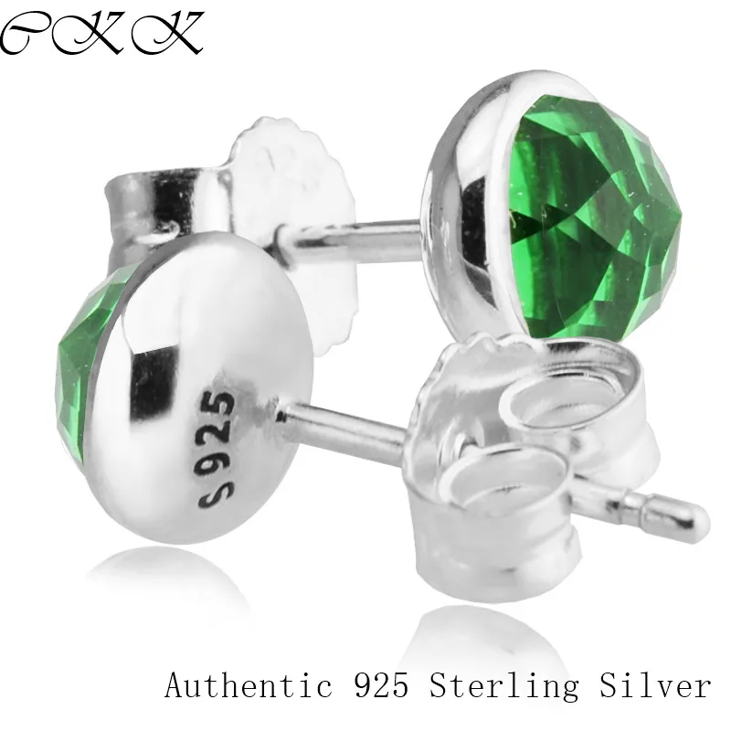 M Droplets Earrings Authentic 925 Sterling Silver Ro Green Crystal Stud Earrings for Women DIY Jewelry FLE080-5