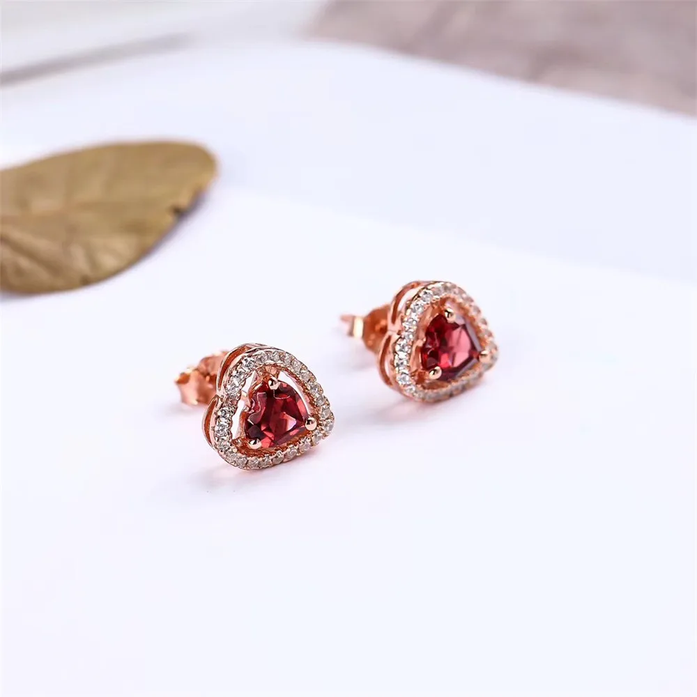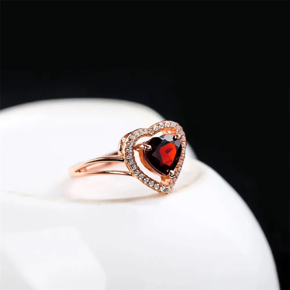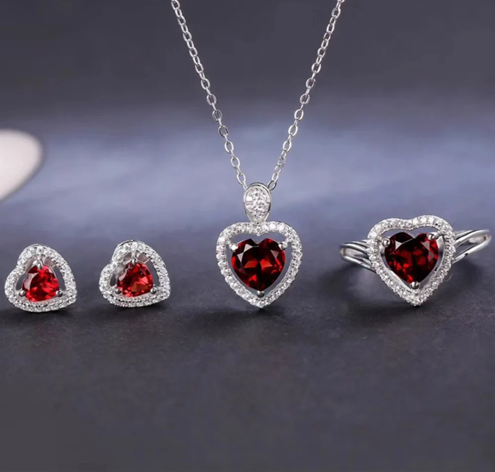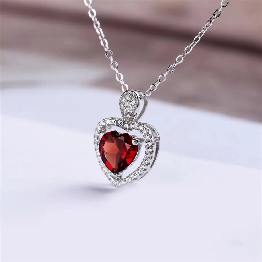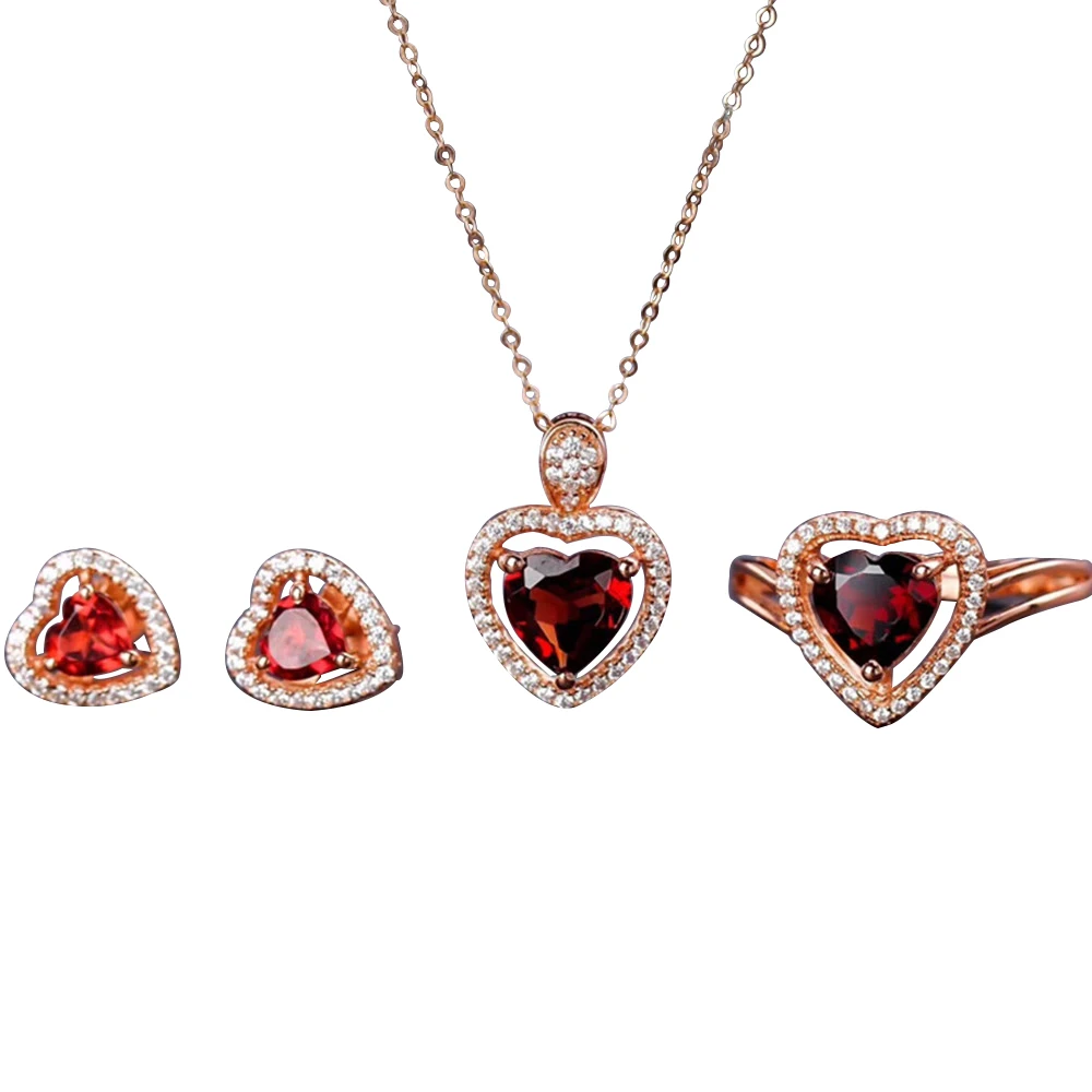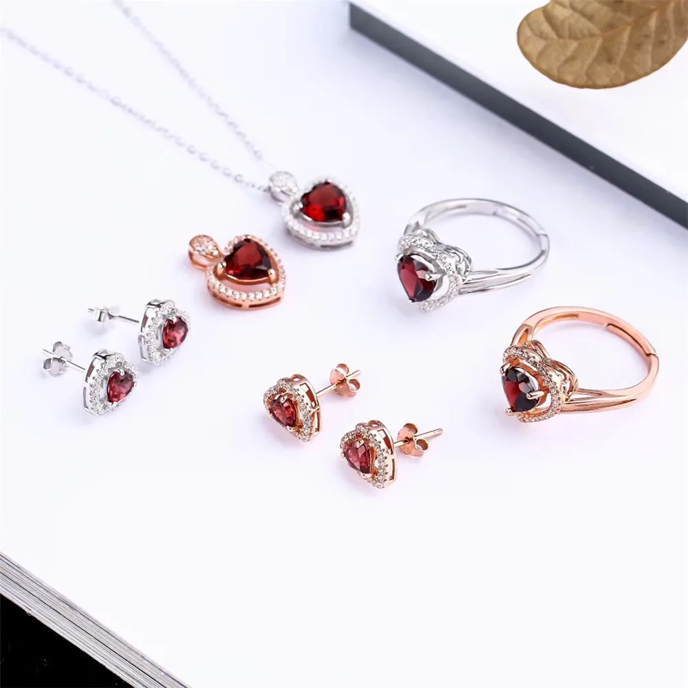 Red Garnet Heart Natural Gemstone Necklaces Earrings Rings Pendants Sets Sterling Silver Fashion Fine Jewelry for Women