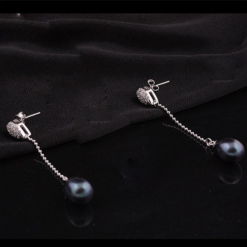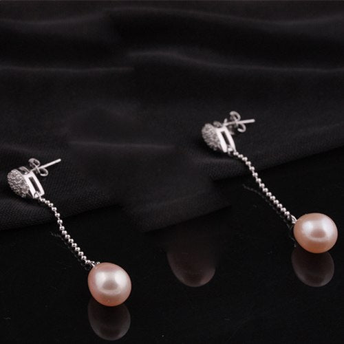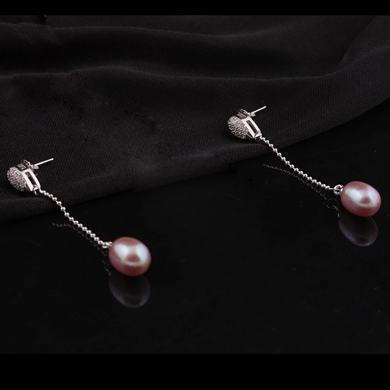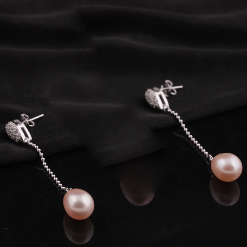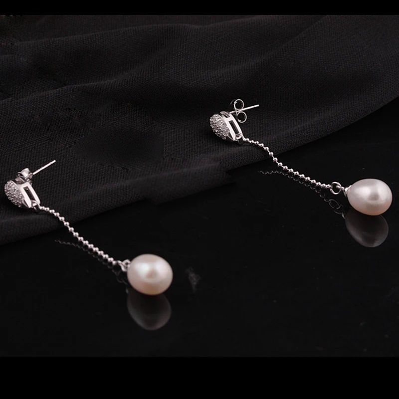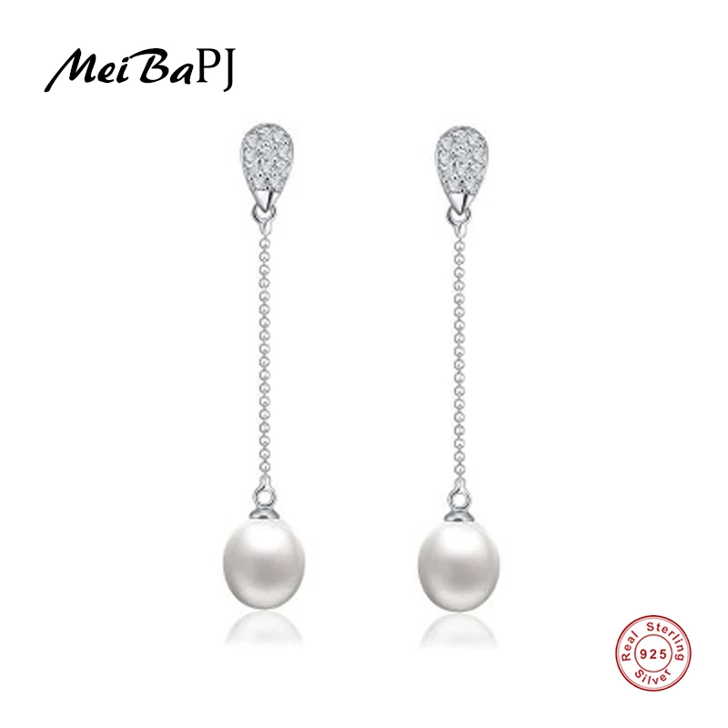 [MeiBaPJ] 925 Silver Long Chain Wedding Earrings Natural Pearl Stud Earring For Women Fine Jewelry With Gift Box