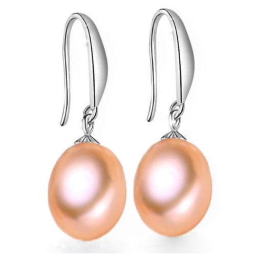 [MeiBaPJ]Classic 925 sterling silver drop earrings 9-10mm big pearl bead genuine natural rice pearl earrings gift box