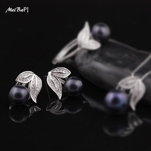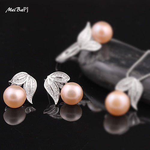 [MeiBaPJ]Classic Princess Earrings 100% real pearl earrings for women 4 colours hot selling sterling silver jewelry