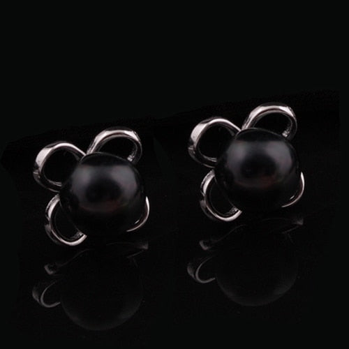 [MeiBaPJ] Elegant Women Pure S925 Sterling Silver Earrings Fashion Real Natural Pearl Sweet Flower Stud Earrings Fine Jewelry