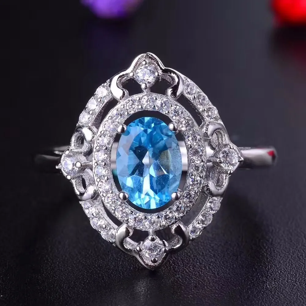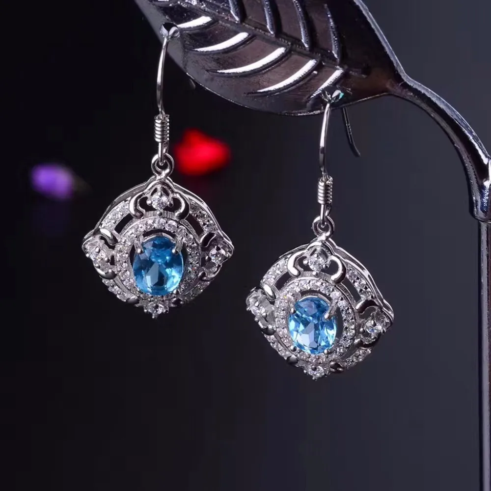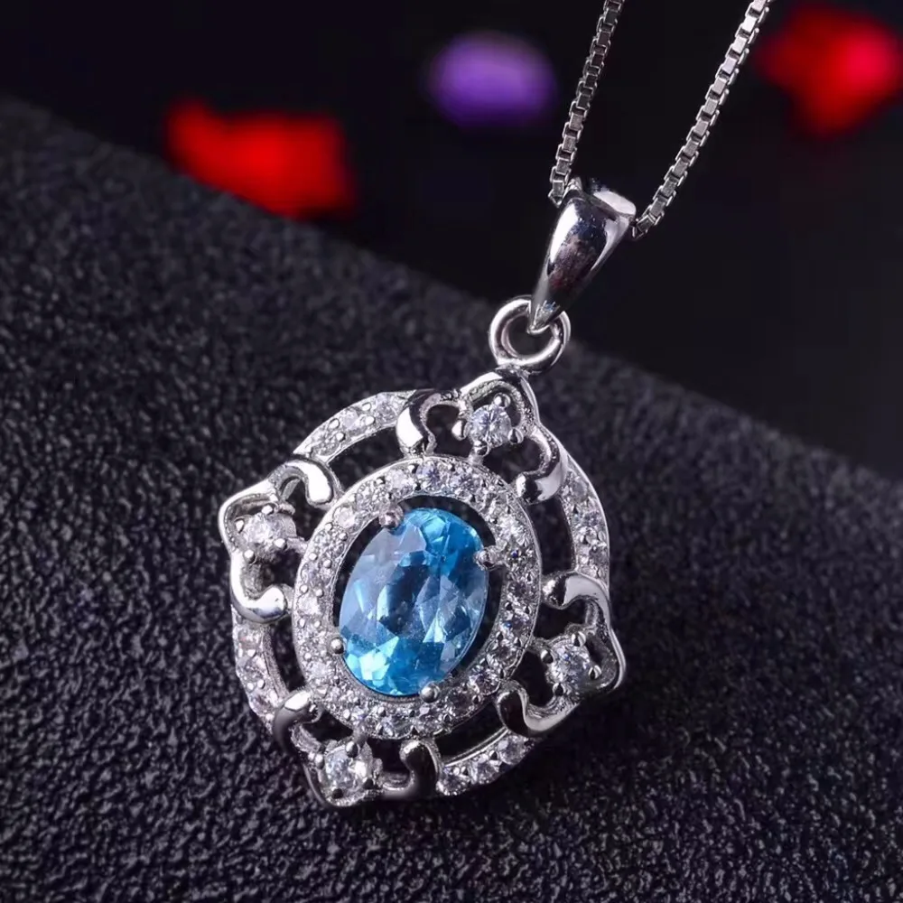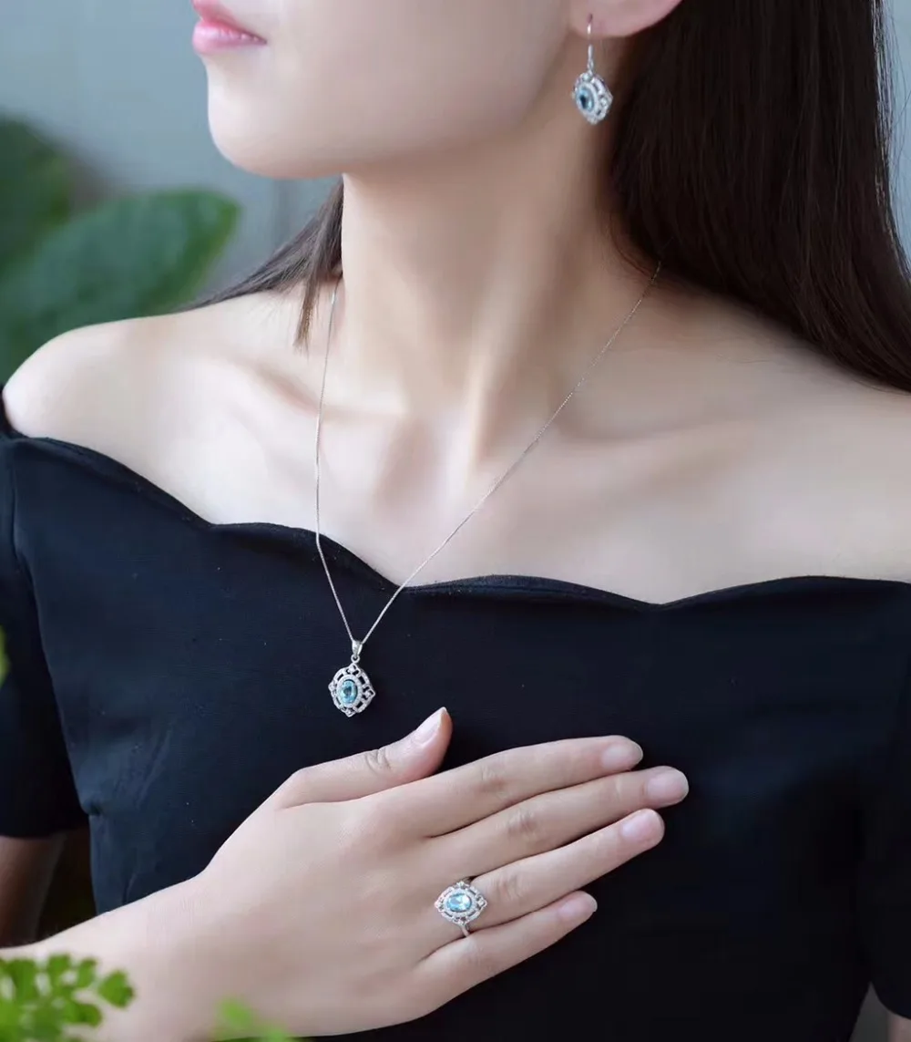 Natural Blue Topaz Jewelry Set 925 Pure Silver Ring Earrings Pendant Necklace 3 Suits Fine Wedding Jewelry for Women