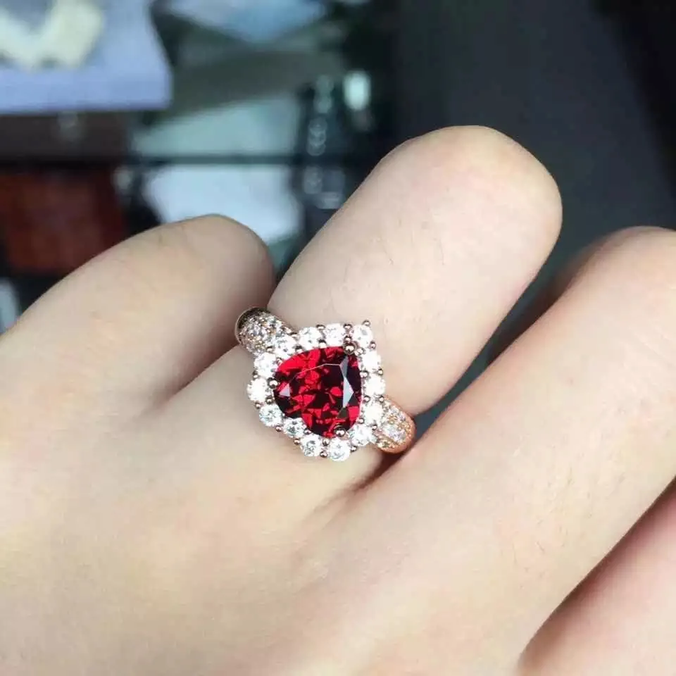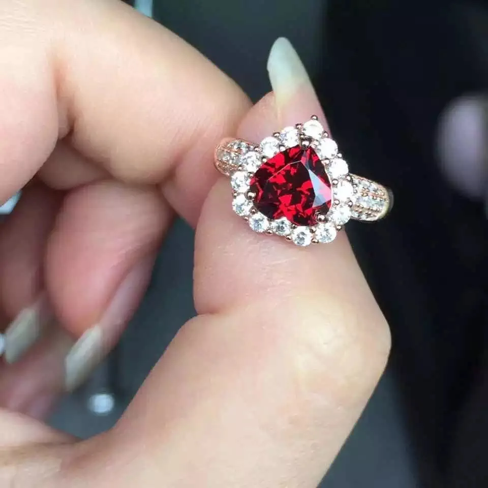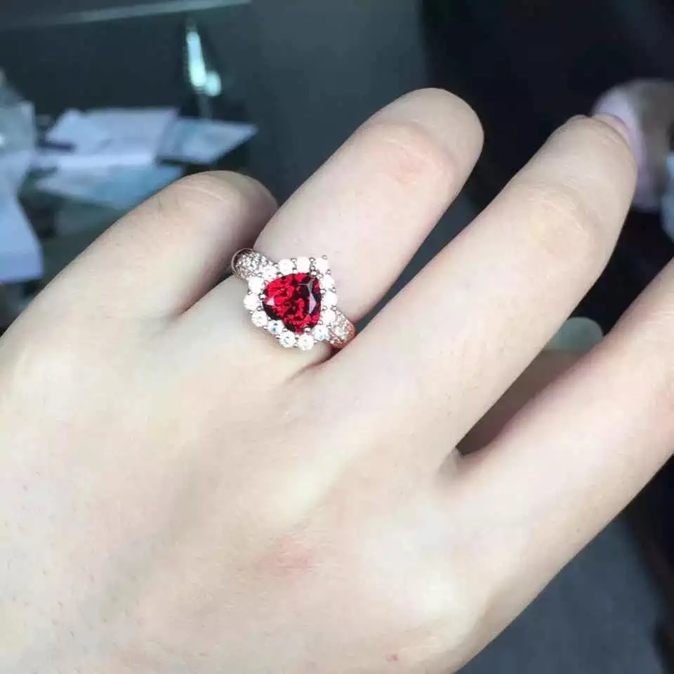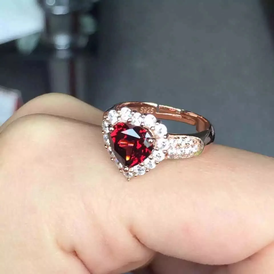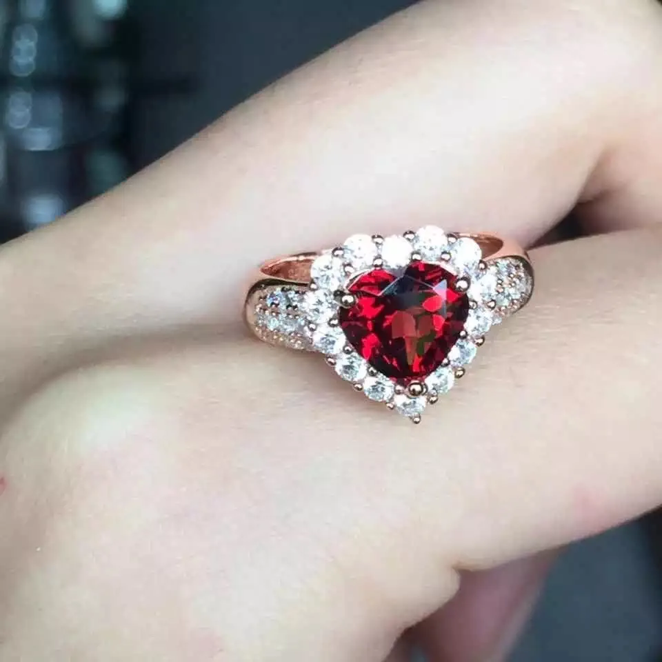 [ Natural Red Garnet Gemstone Trendy Love Heart Ring for Women Real 925 Sterling Silver Charm Fine Jewelry