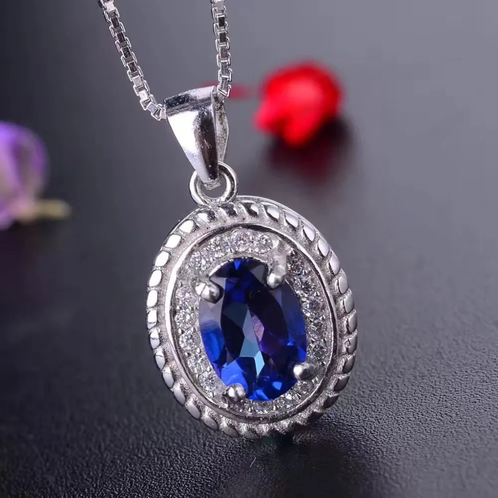 Noble and Elegant Blue Treasure 925 Pure Silver Tanzania Topaz Suit Necklace and Rings Fine Jewelry Set