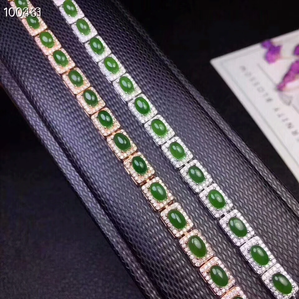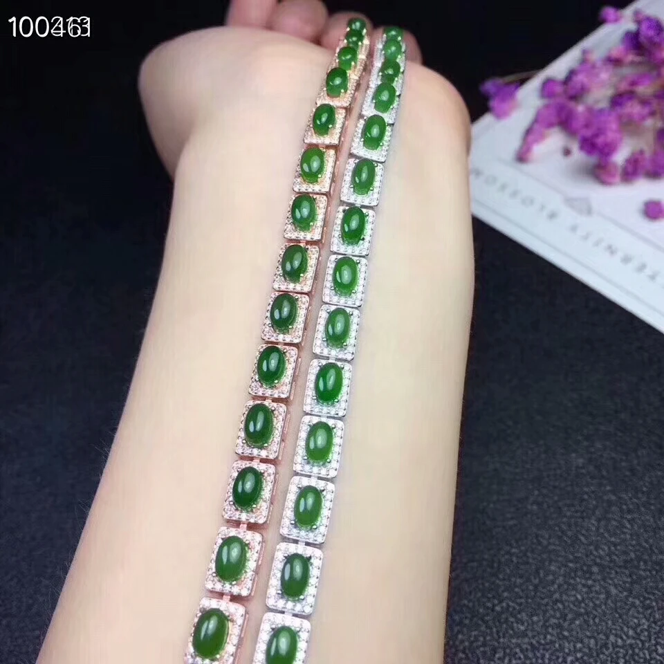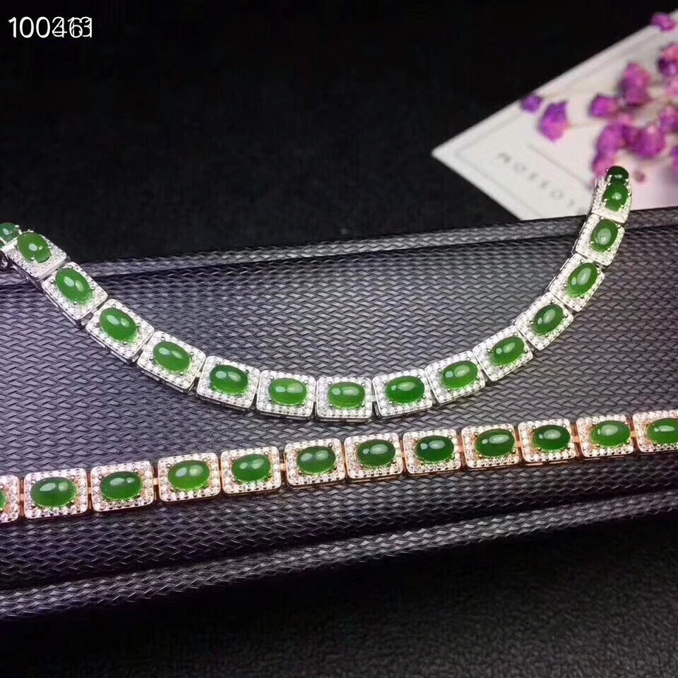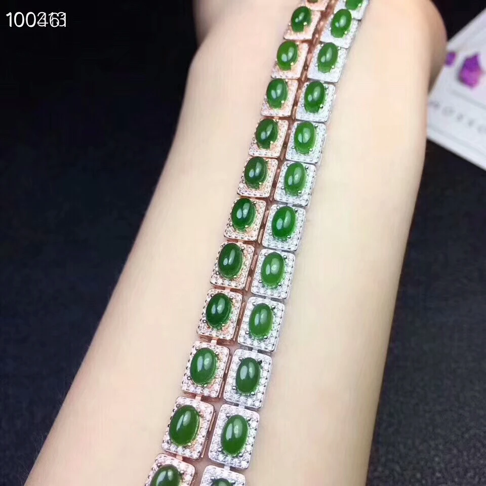 [MeiBaPJ]Real Natural Jasper Gemstone Bracelet 925 Sterling Silver Green Stone Bangle for Women Fine Wedding Jewelry