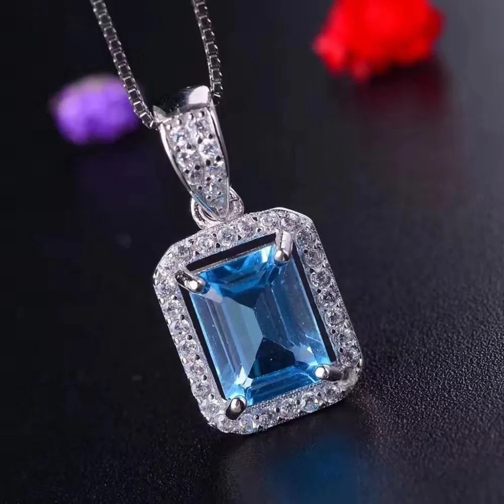 S Blue Treasure 925 Pure Silver Tanzania Topaz Suit Necklace and Rings Fine Jewelry Set