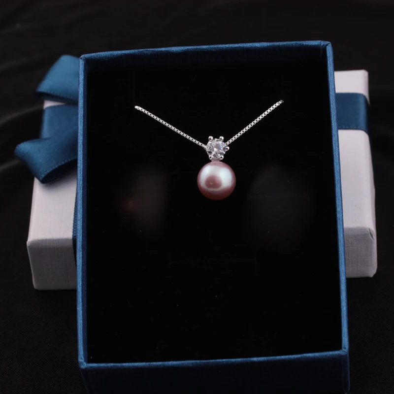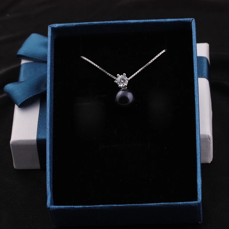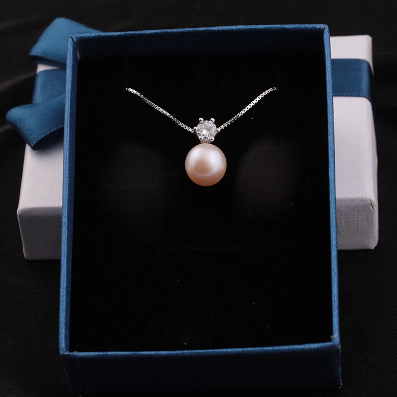 [MeiBaPJ] Simple Pearl Pendant Necklace 925 Sterling Silver Classic Pendant with Silver Box Chain Fine Jewelry for Women