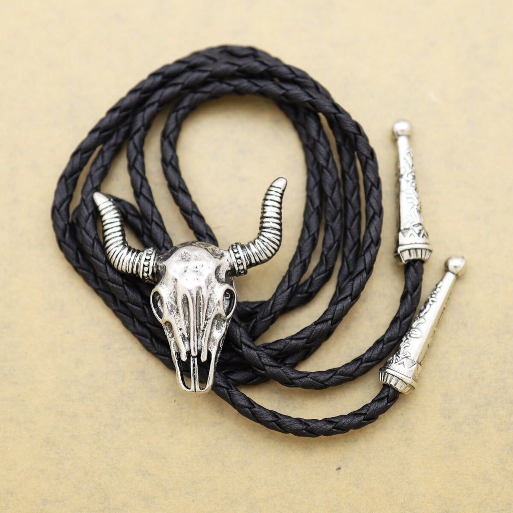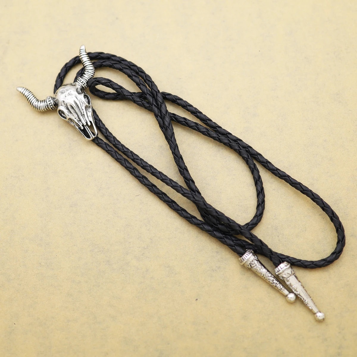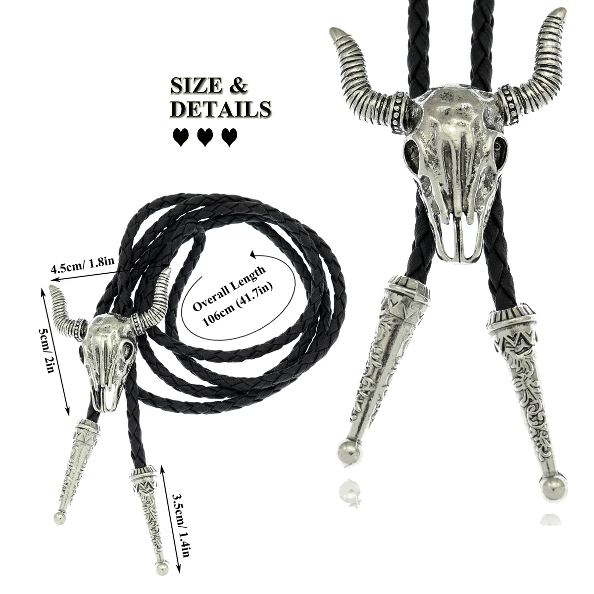 Men Cow Skull Texas Bolo Bola Tie Necktie Necklace Rodeo Longhorn Steer Bull Head Skeleton Southwest Western Hip Hop jewelry