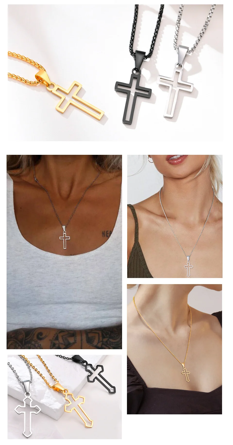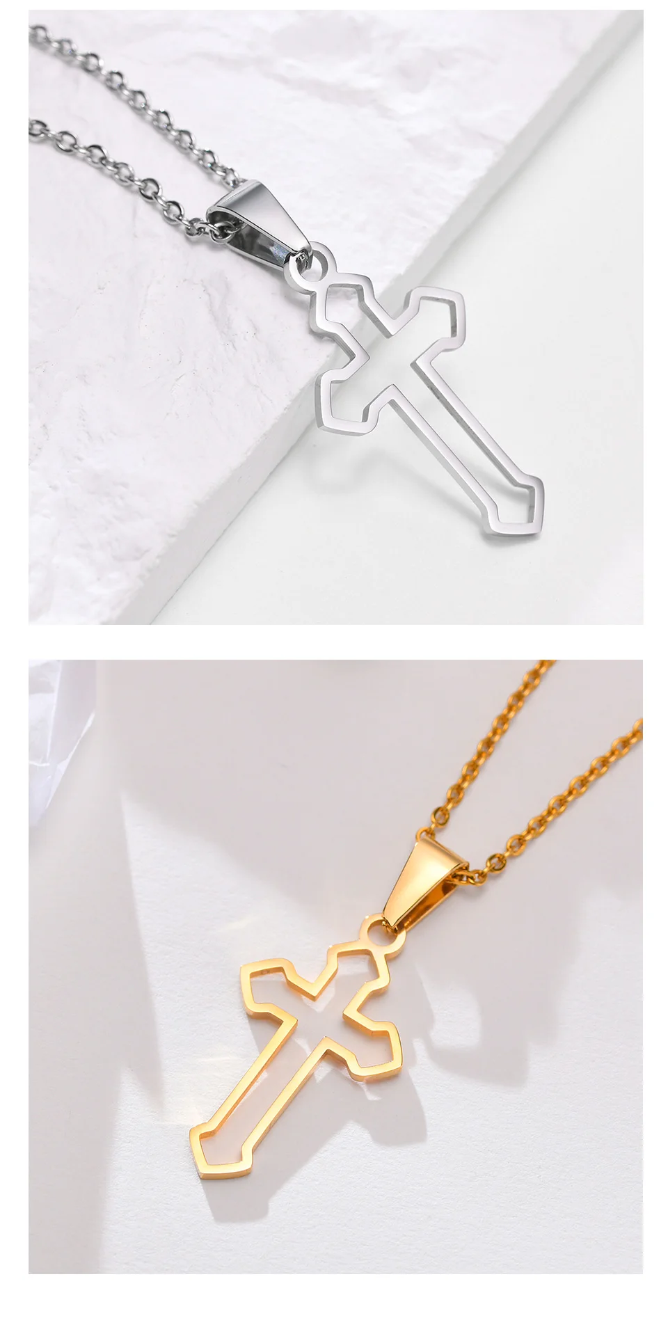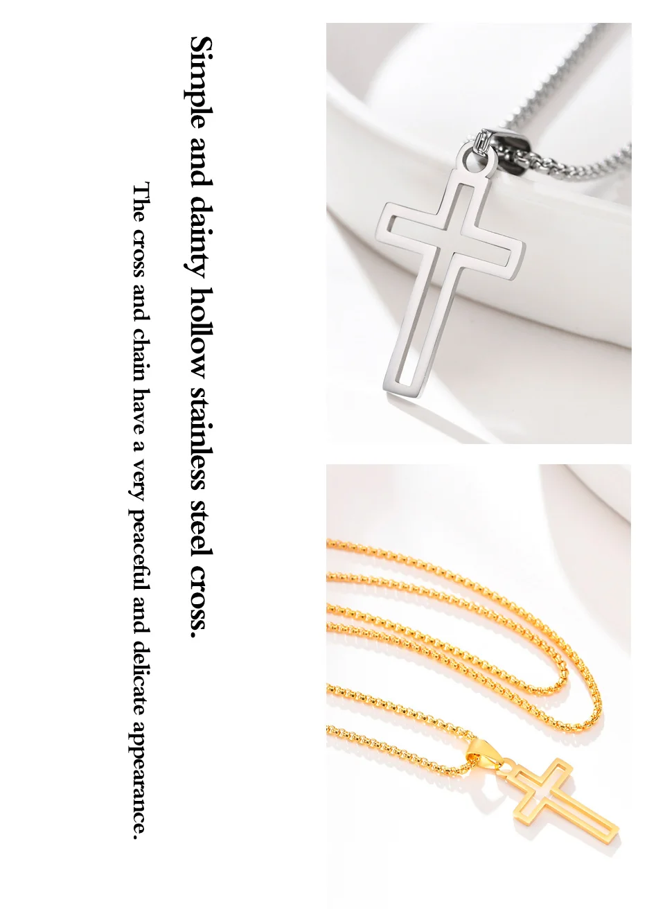 Men Cross Pendants,Outlined Cross Mens Necklace,Stainless Steel Hollow Crucifix Outline,Jesus Religious Confirmation Jewelry