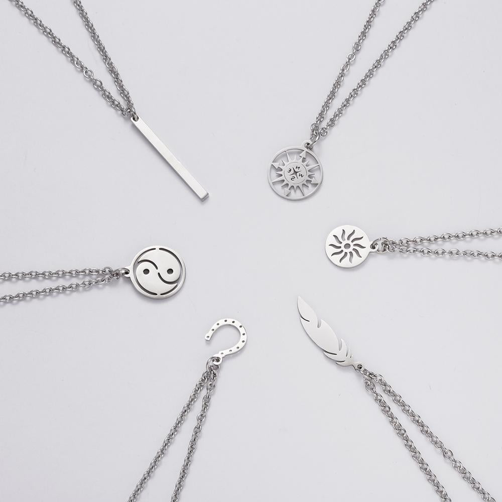 Men Necklace Stainless steel Necklace Women Men Simple Long Chain Rectangular Pendant Necklace Statement Couples Choker Gifts