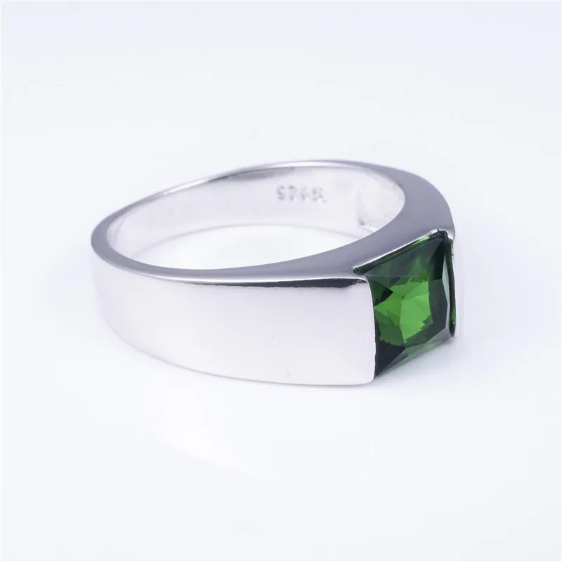 Men's Eternity 925 Sterling Silver Square natural green gemstone Stone Solitaire Ring Size 8-12