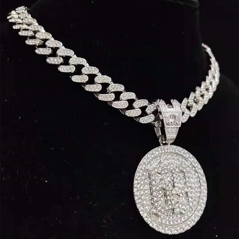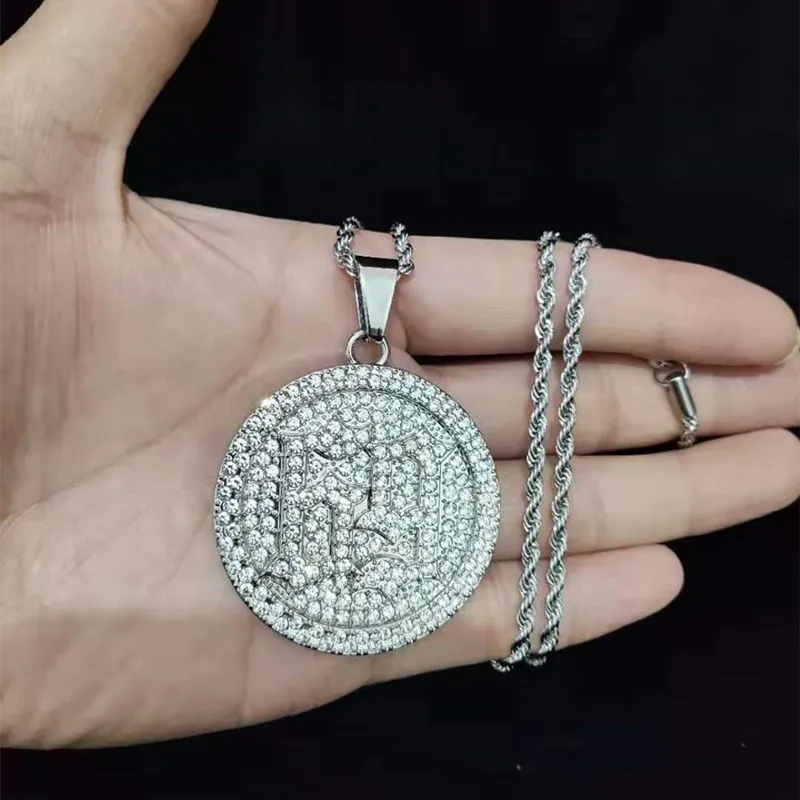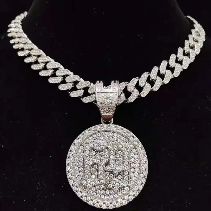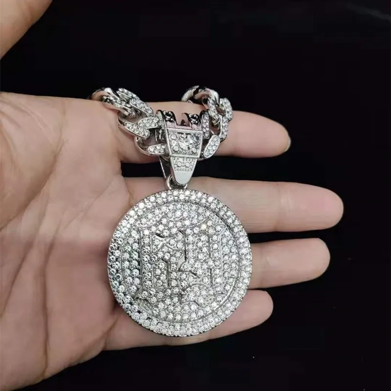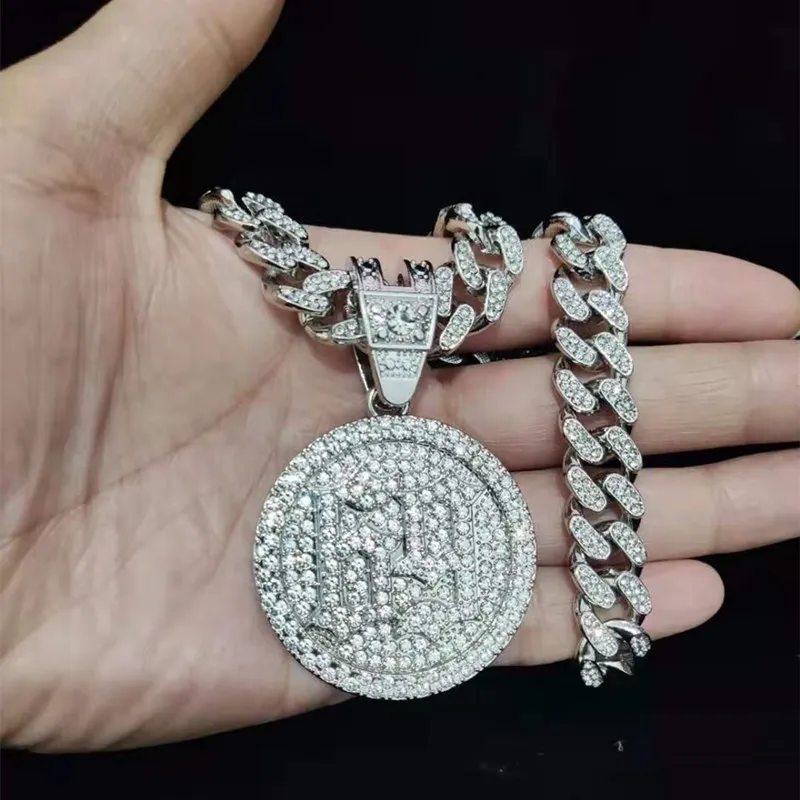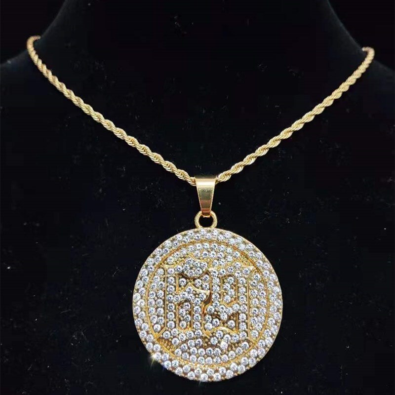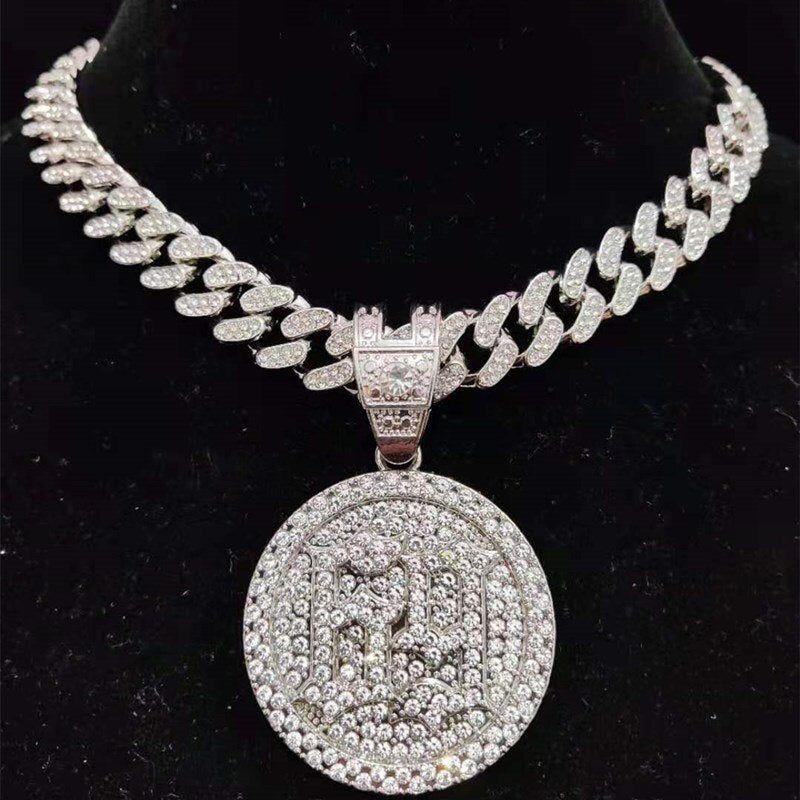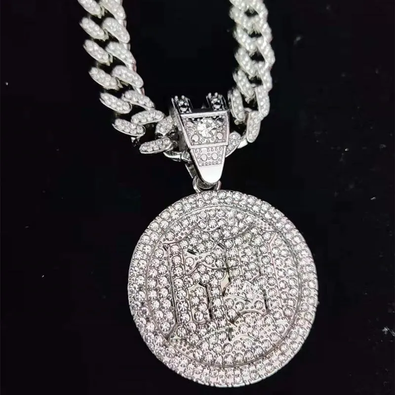 Men Women Hip Hop 6ix9ine Round Pendant Necklace Miami Cuban Chain Iced Out Bling Bling HipHop Necklaces Charm Jewelry