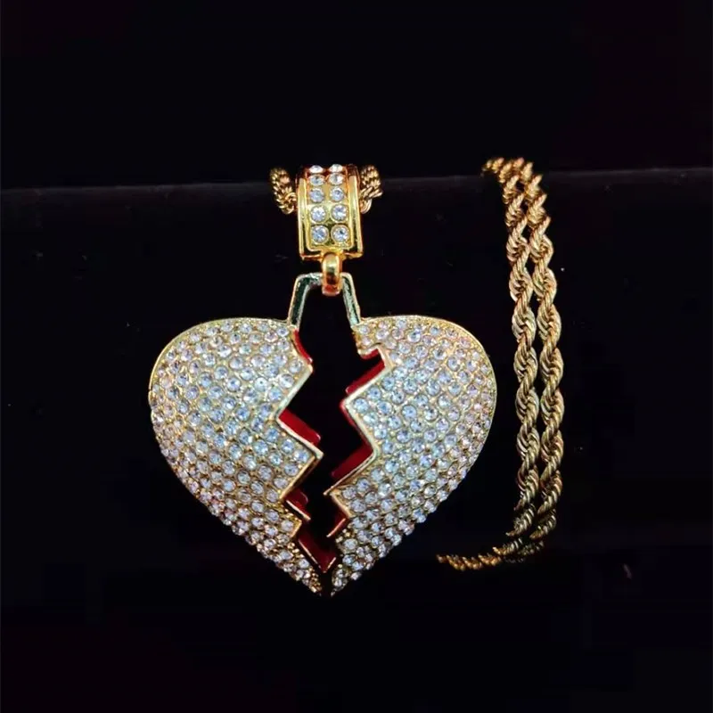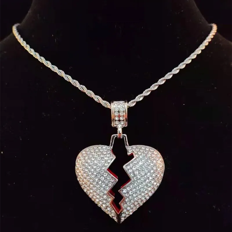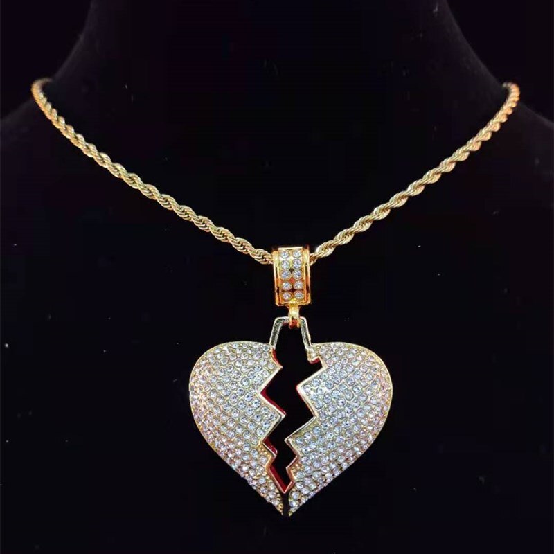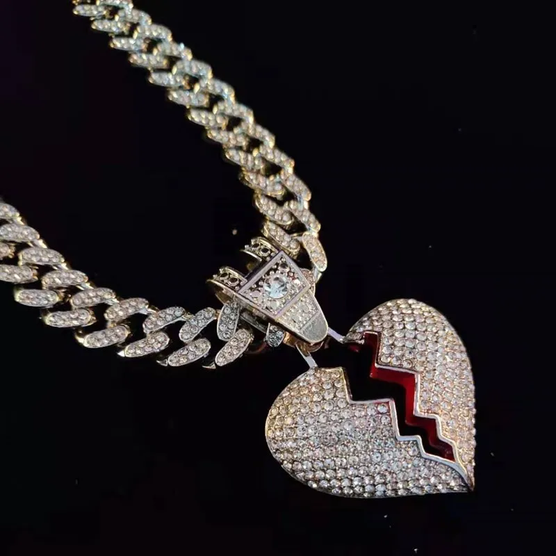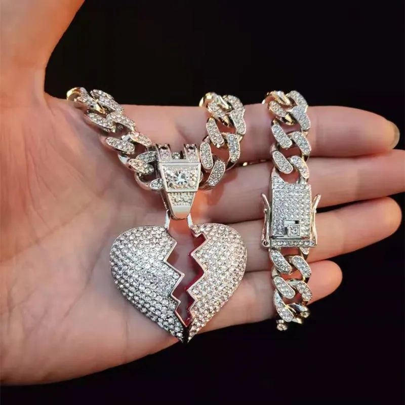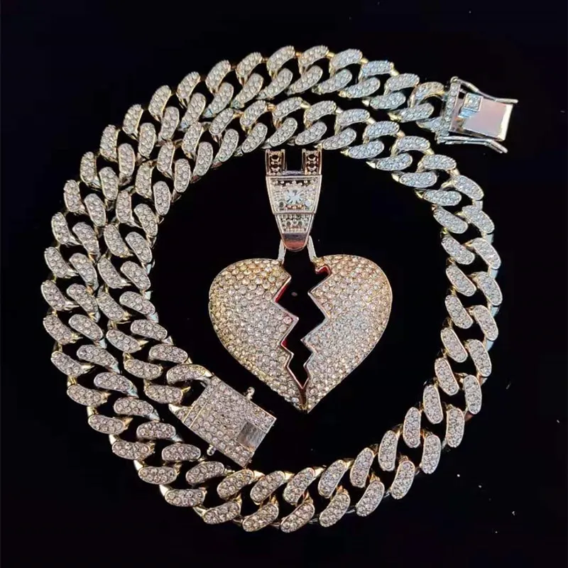 Men Women Hip Hop Iced Out Bling Bling Heart Pendant Necklace with 13mm Miami Cuban Chain HipHop Necklaces Charm Jewelry