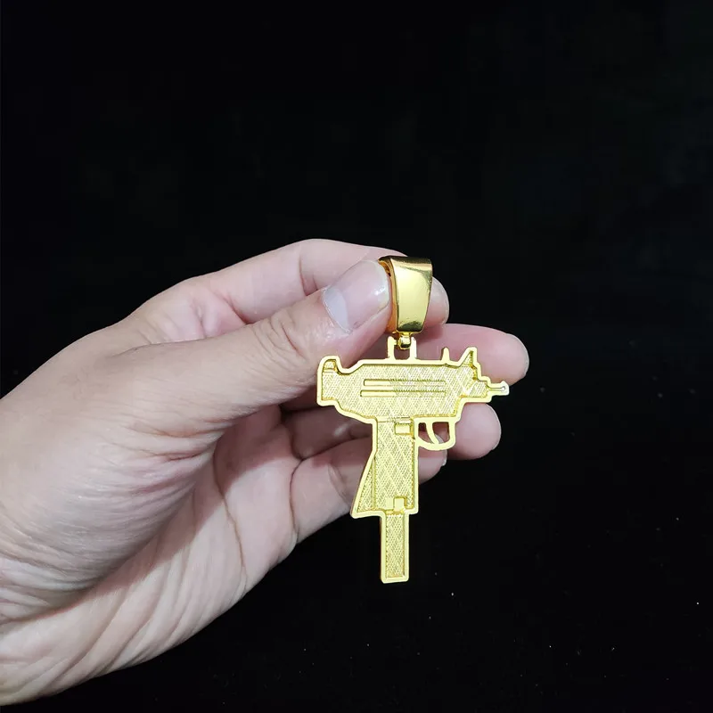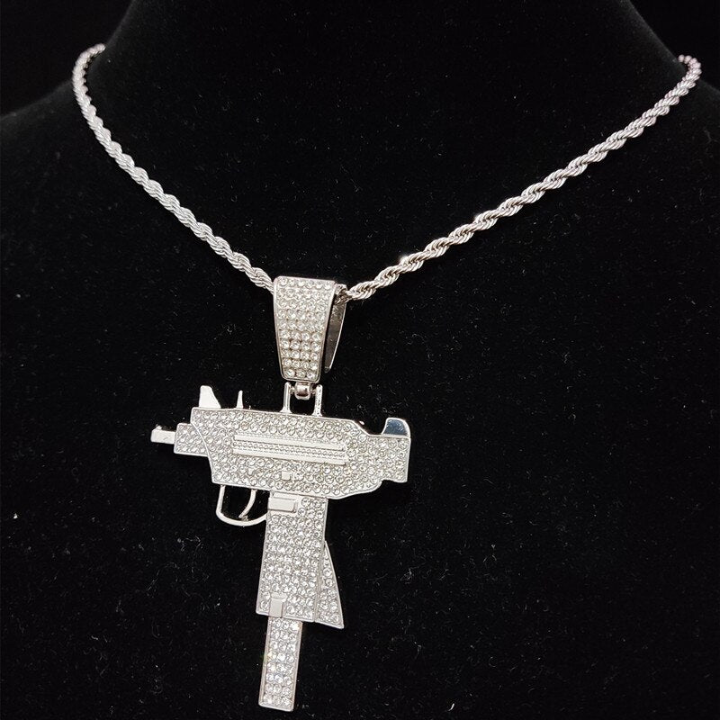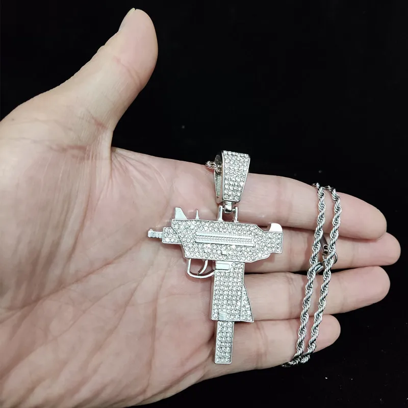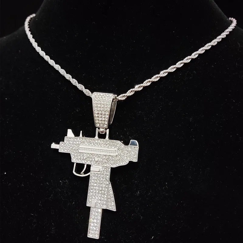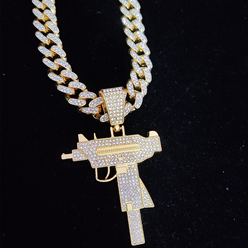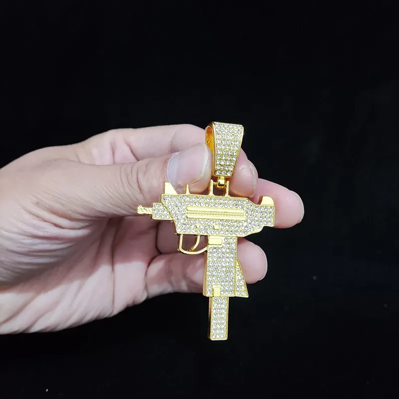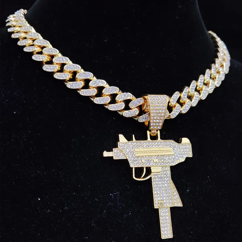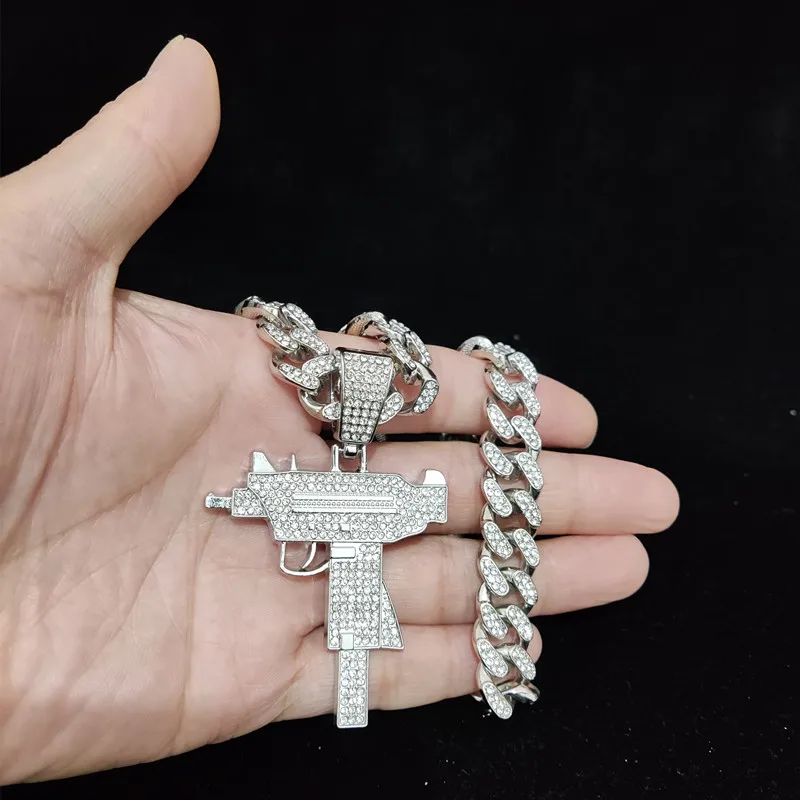 Men Women Hip Hop Iced Out Bling UZI Gun Pendant Necklace with 13mm Miami Cuban Chain HipHop Necklaces Charm Jewelry
