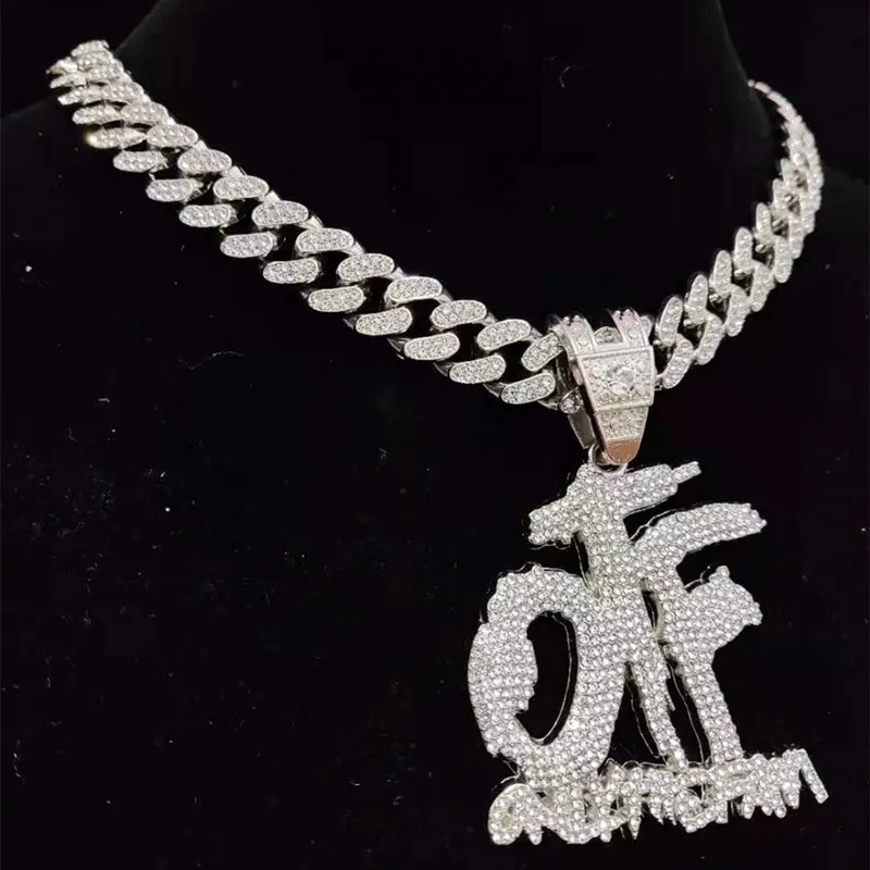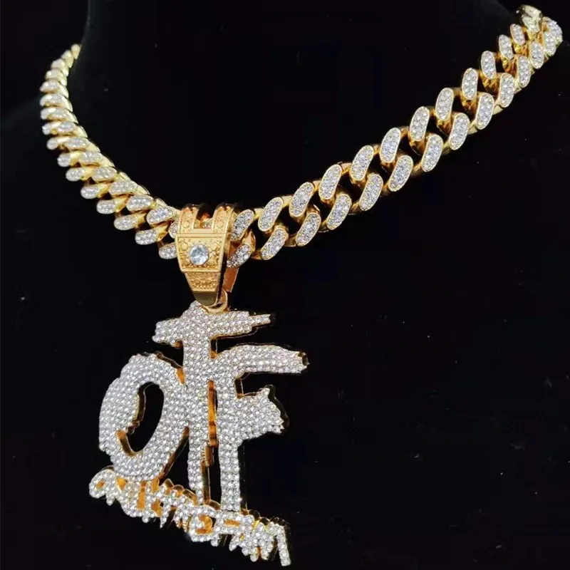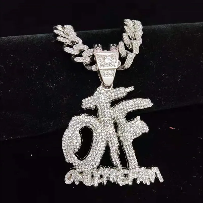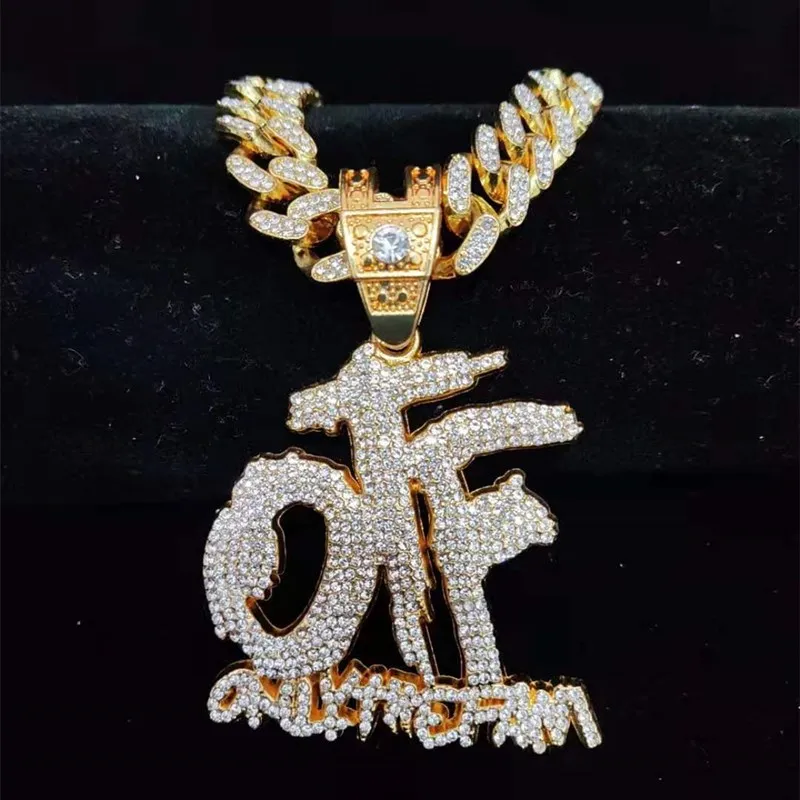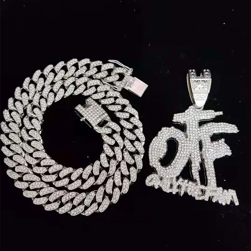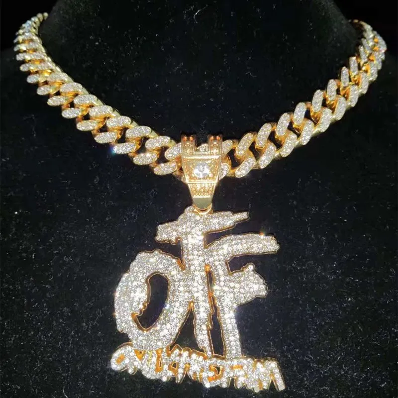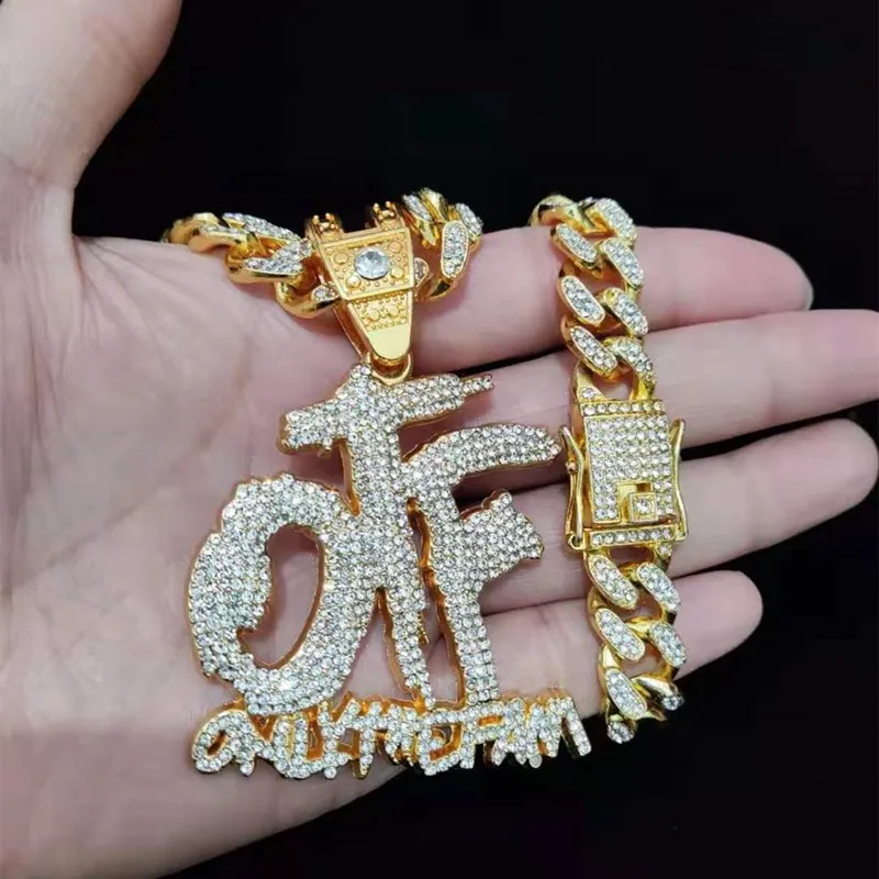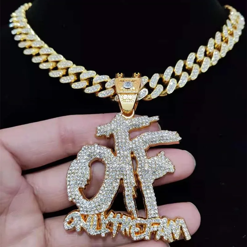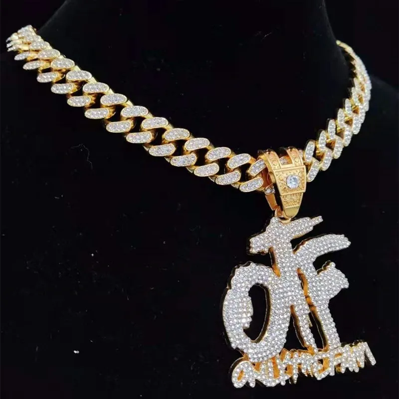 Men Women Hip Hop ONLY THE FAMILY Letter Pendant Necklace with 13mm Miami Cuban Chain Iced Out Bling Necklaces Hiphop Jewelry
