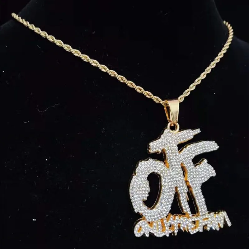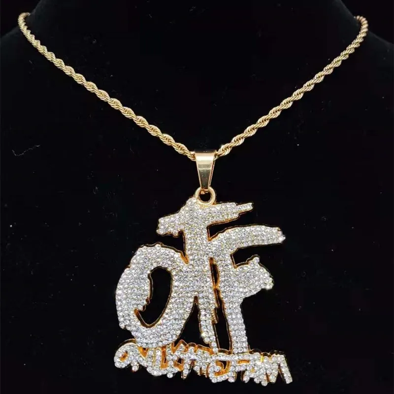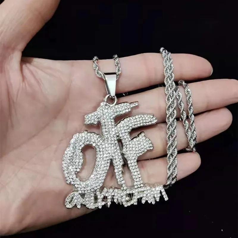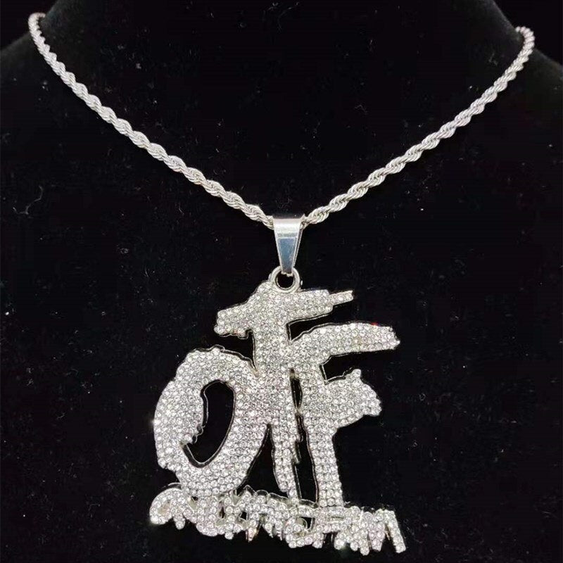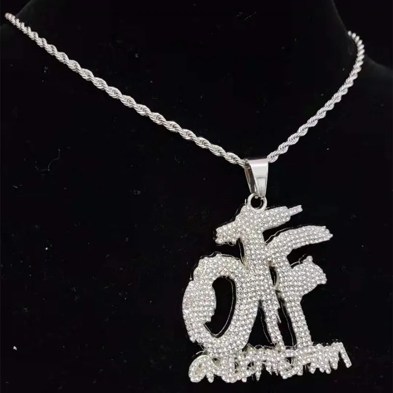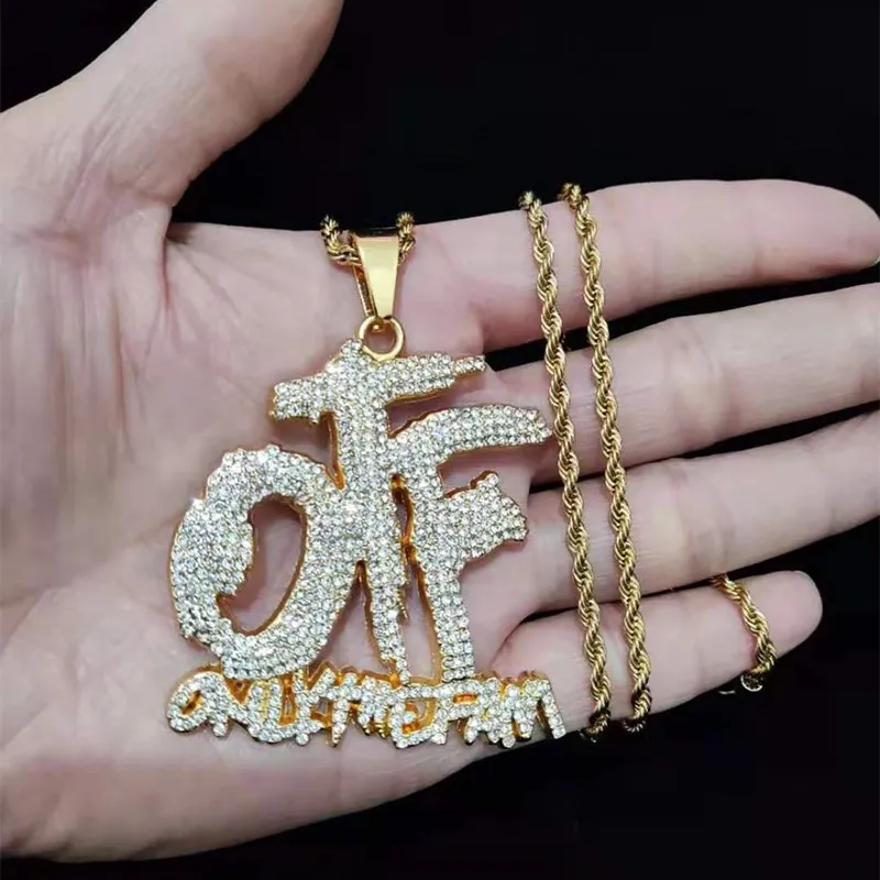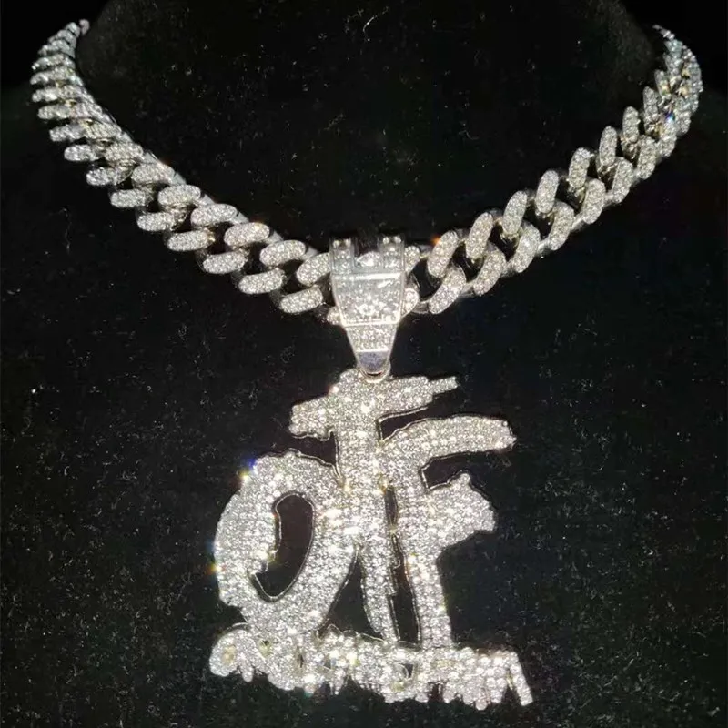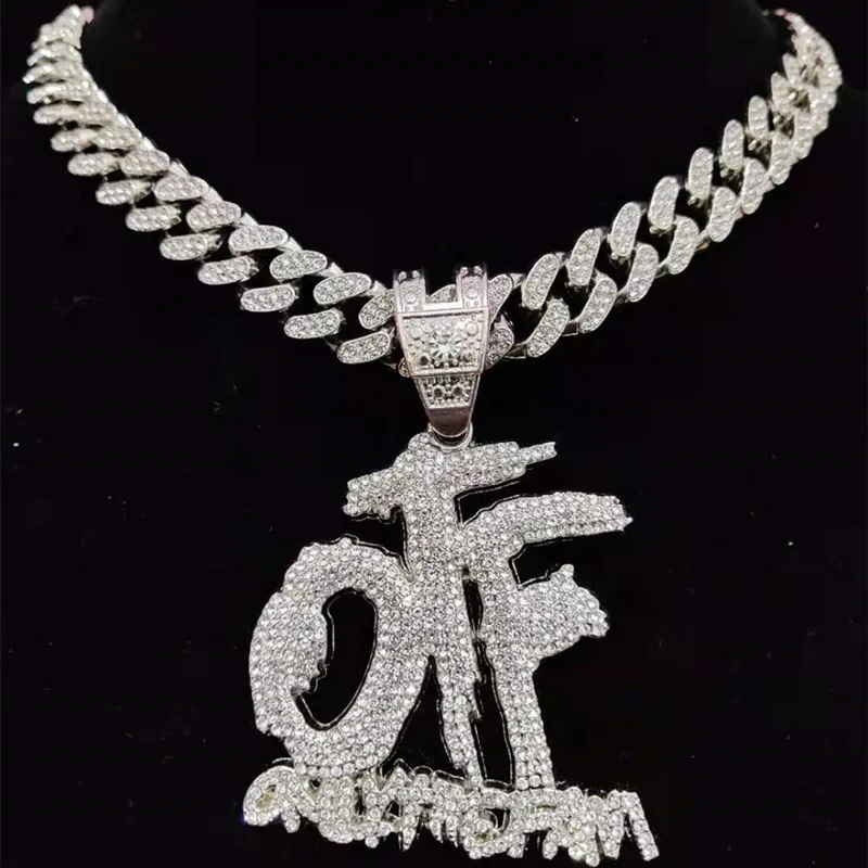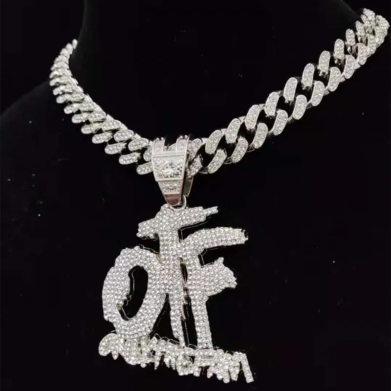 Men Women Hip Hop ONLY THE FAMILY Letter Pendant Necklace with 13mm Miami Cuban Chain Iced Out Bling Necklaces Hiphop Jewelry