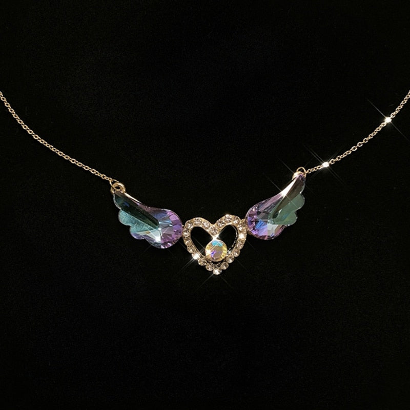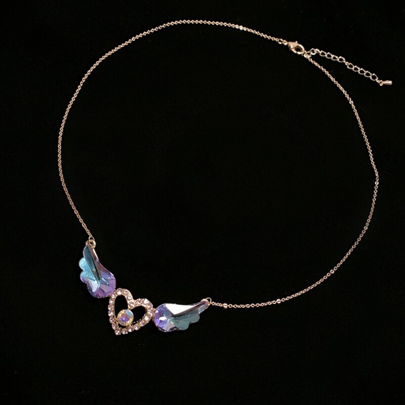 MENGJIQIAO Korean Elegant Wing Crystal Choker Necklace For Women Girls Hollow Heart Rhinestone Necklace Party Jewelry