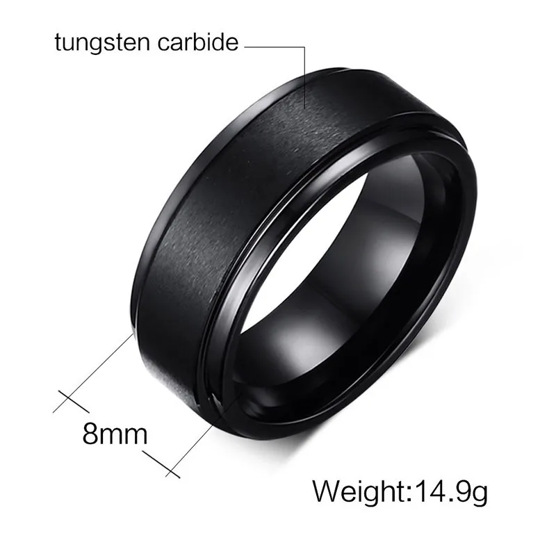 Mens BASE RINGS 8 MM Wedding Band Black Pure Carbide Tungsten Engagement Ring for Men Brushed Mate Center Jewelery