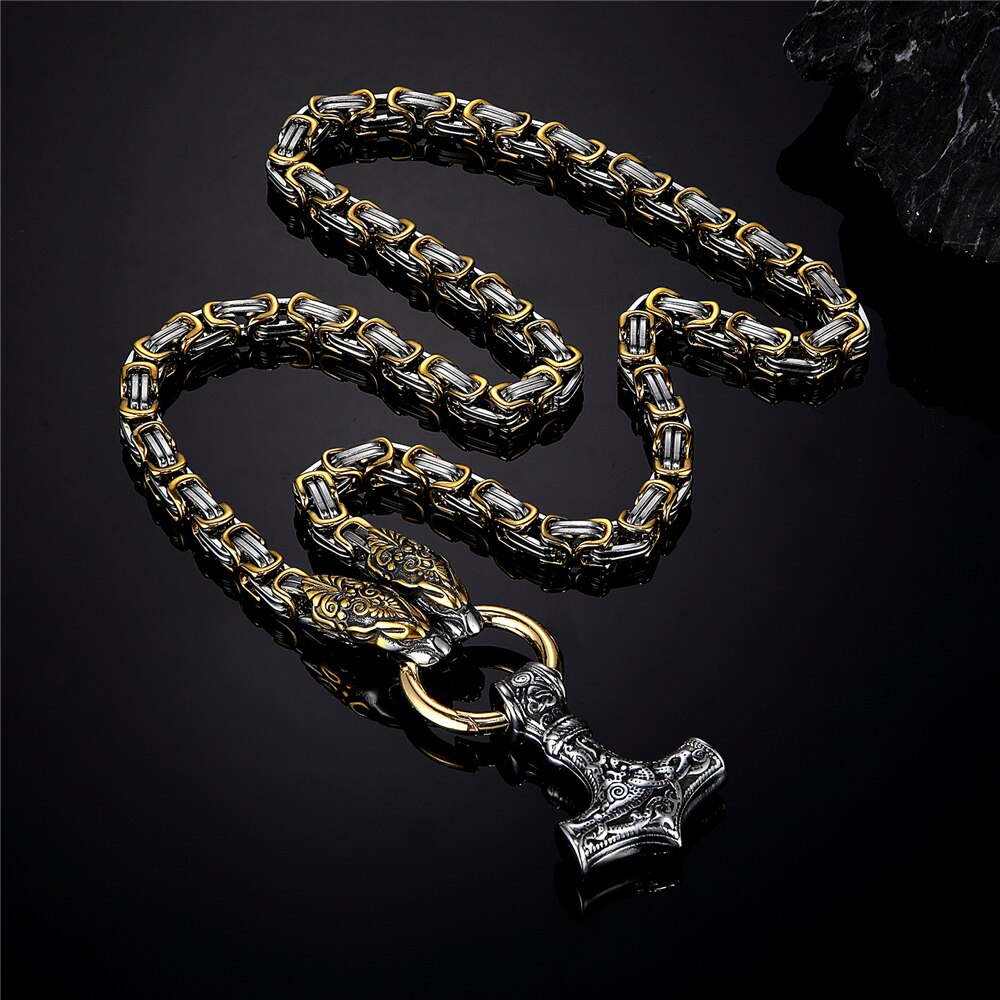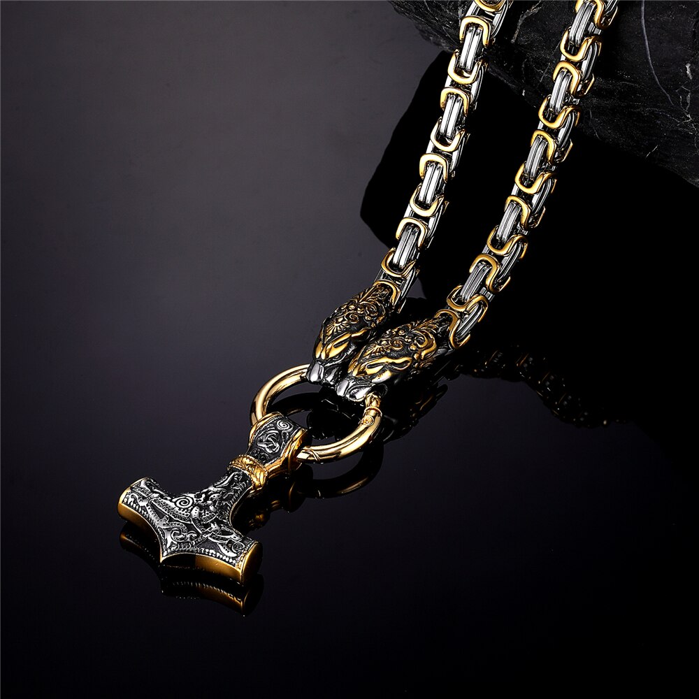 Theme : Stainless Steel Viking Thor Hammer Celtic Wolf Necklaces Pendant