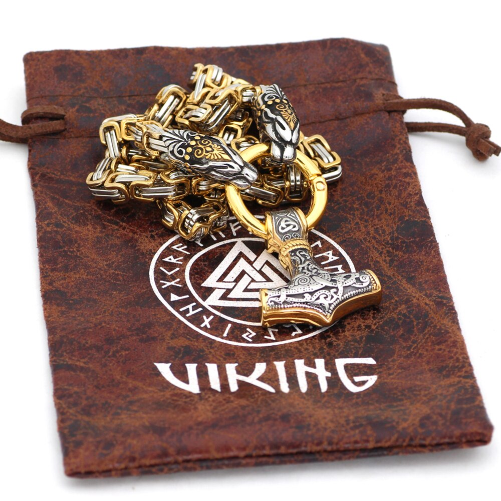 Mens Dragon Head Necklaces Viking Vegvisir Amulet MJOLNIR Pendant Norse Runes Anchor Stainless Steel Mix Gold King Chain Jewelry