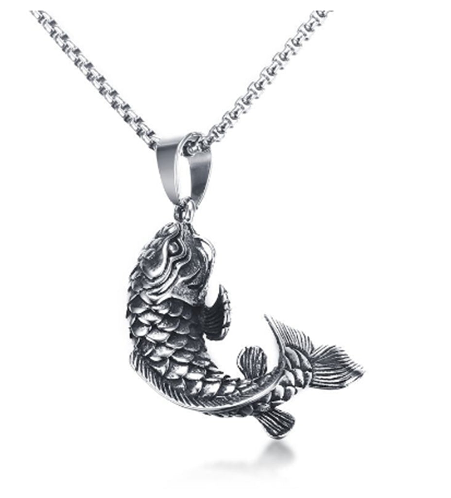 Mens Goldfish Hooked 3D Koi Fish Pendant Necklace in Stainless Steel Mythical Ocean Jewelry Collares Collier Colar