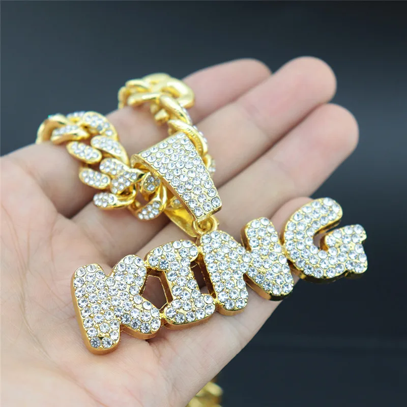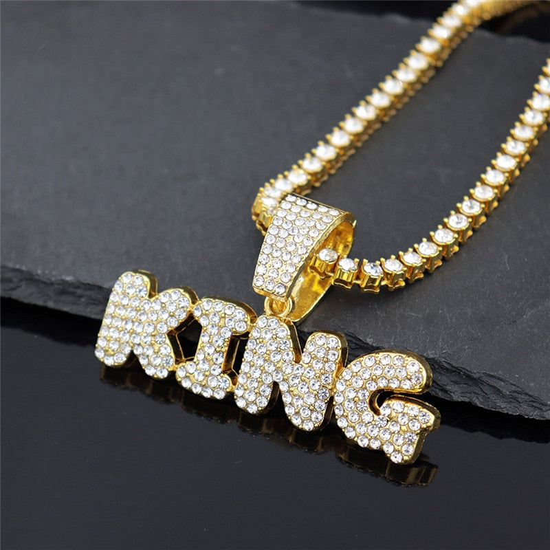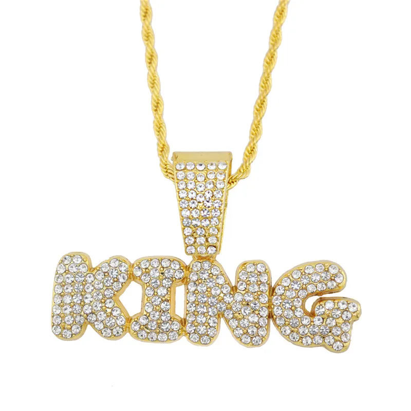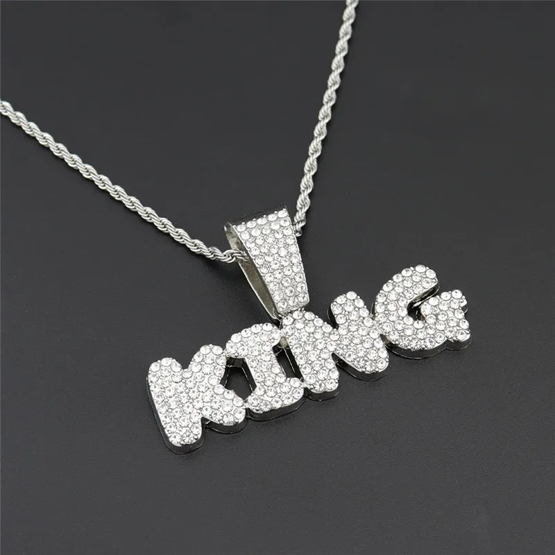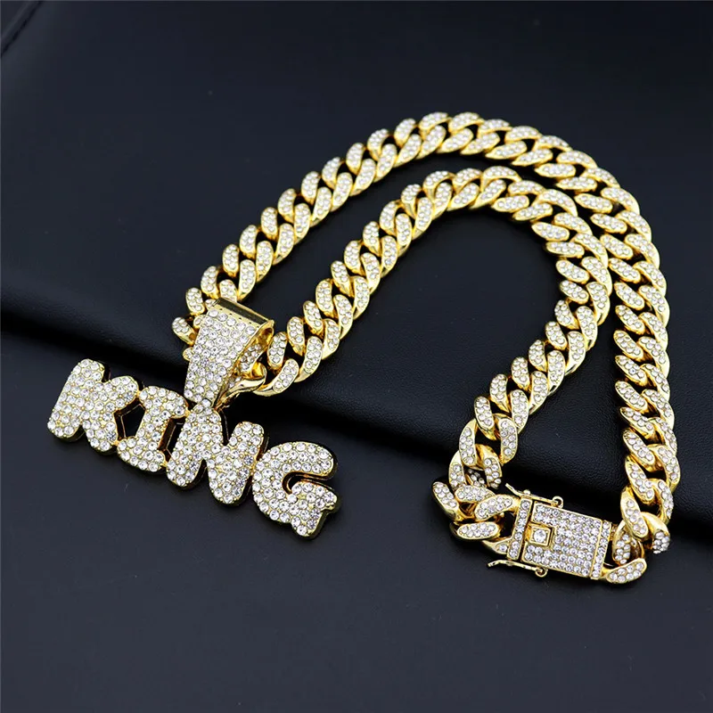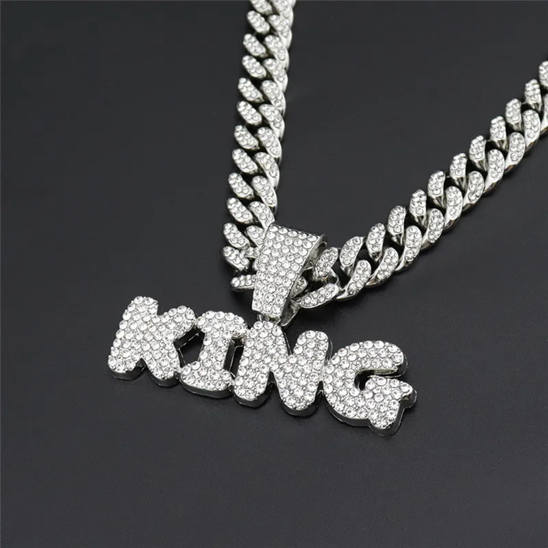 Men's Hip Hop Jewelry King Pendants Necklaces Bling Ice Out Rhinestone Gold Cuban Link Chain Letter Choker Rapper Jewelry Gifts