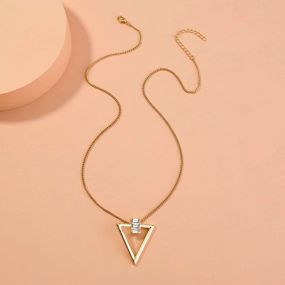 metal necklace retro wild crystal geometric triangle pendant clavicle chain sale