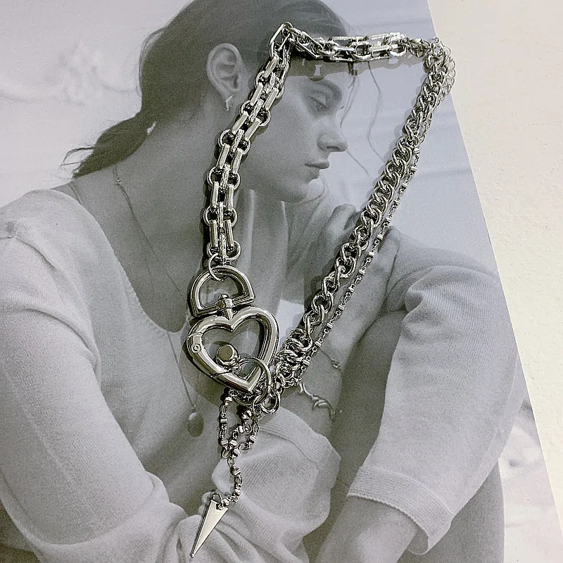 Metal Thick Chain Necklace For Women Clavicle Chain Choker Heart Lock Necklace Jewelry Accessories