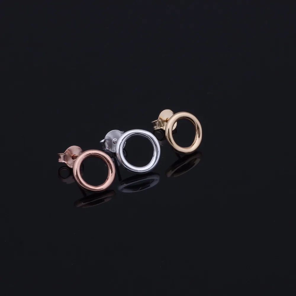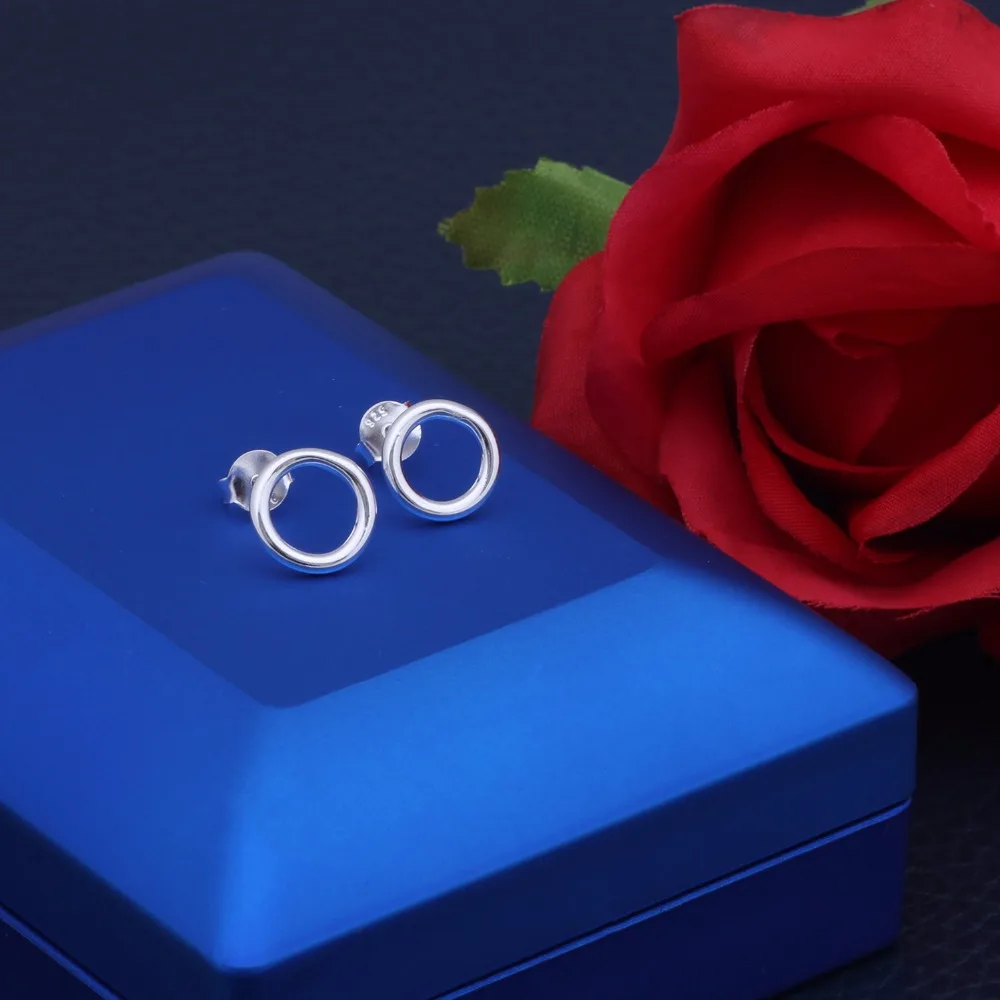 Authentic 925 Sterling Silver Three Colors Classic Fashion Round Stud Earrings for Party Women's Fine Jewelry
