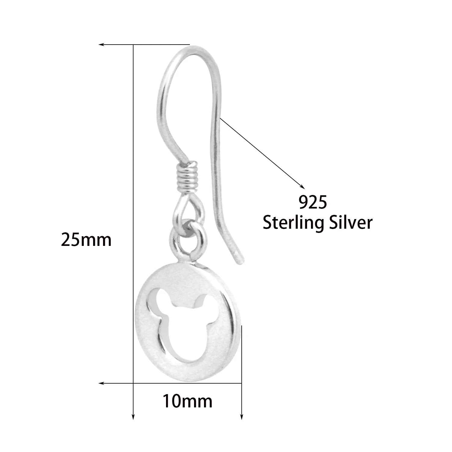 Classic Hollow Mickey Pattern Earrings 925 Sterling Silver Silver Drop Earrings for Women Wedding Birthd Party Jewelry