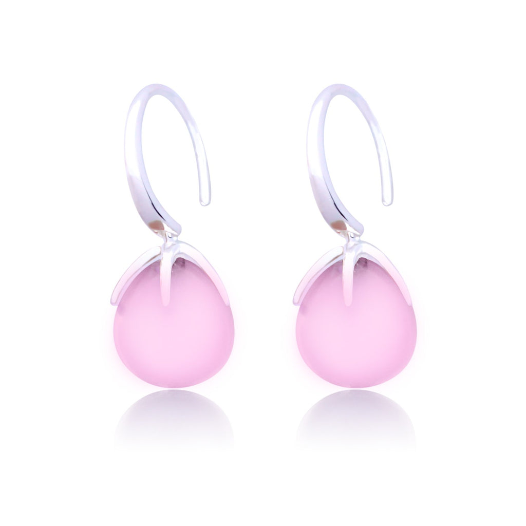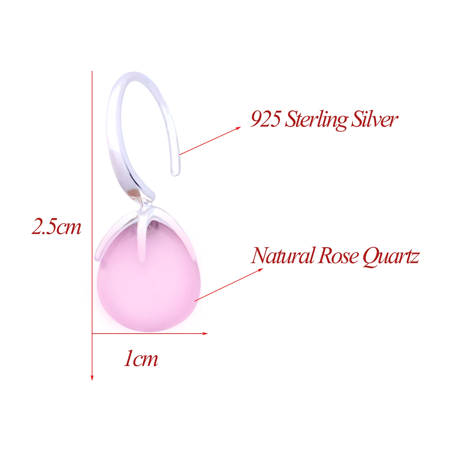 Natural Claw Setting Water Drop Rose Quartz Earrings Solid 925 Sterling Silver Earrings for Women and Girl Fine Jewelry